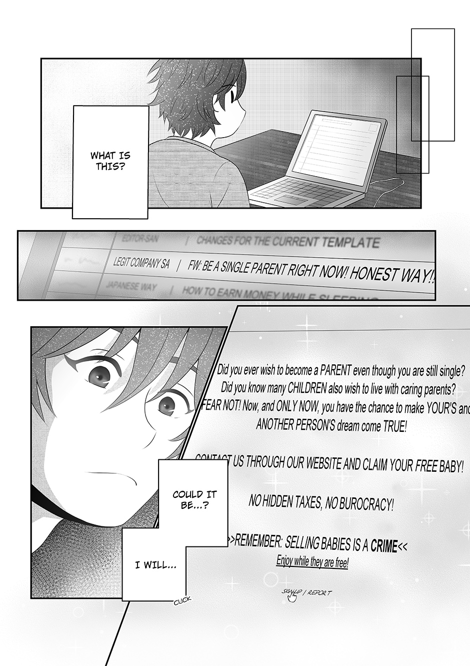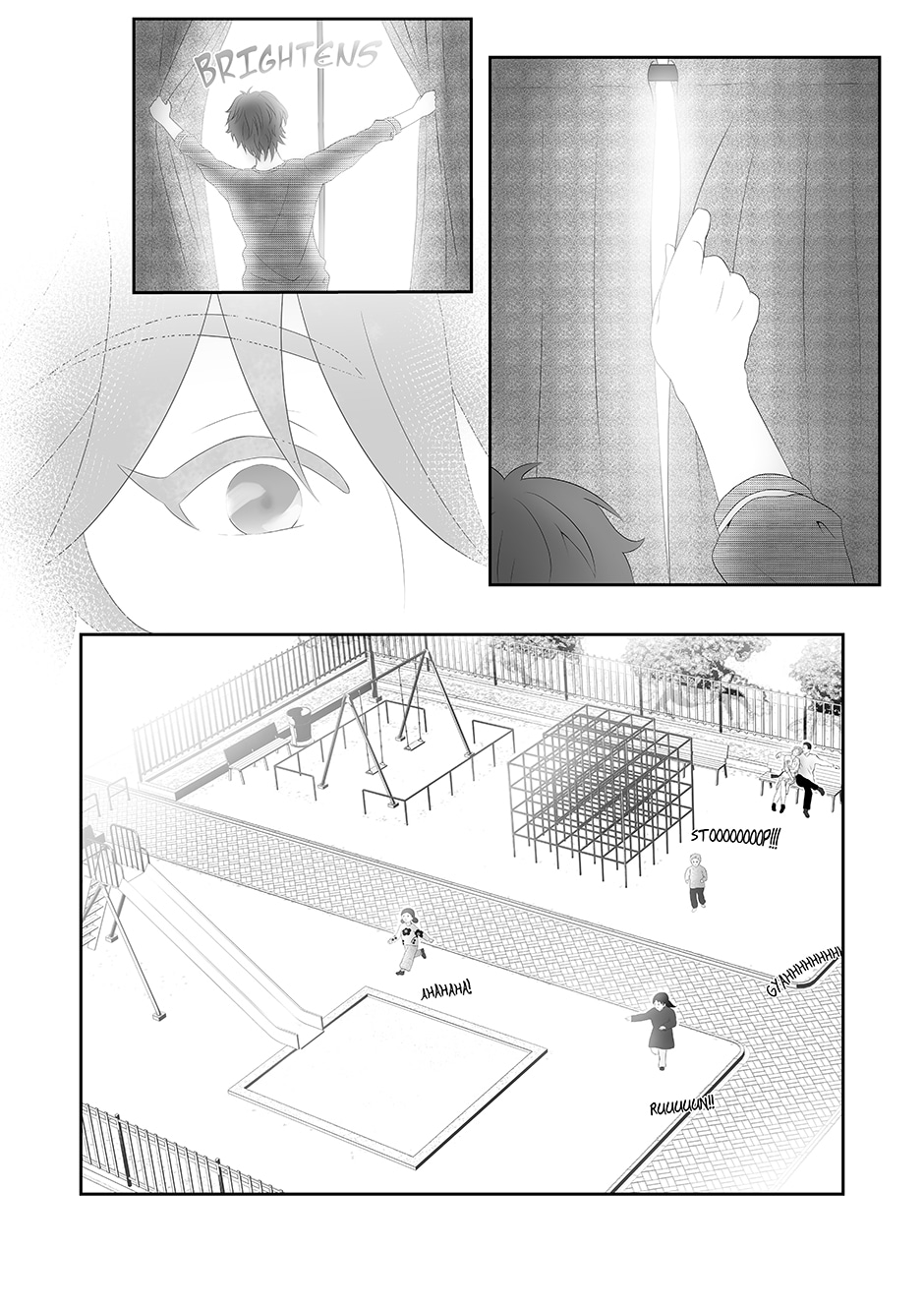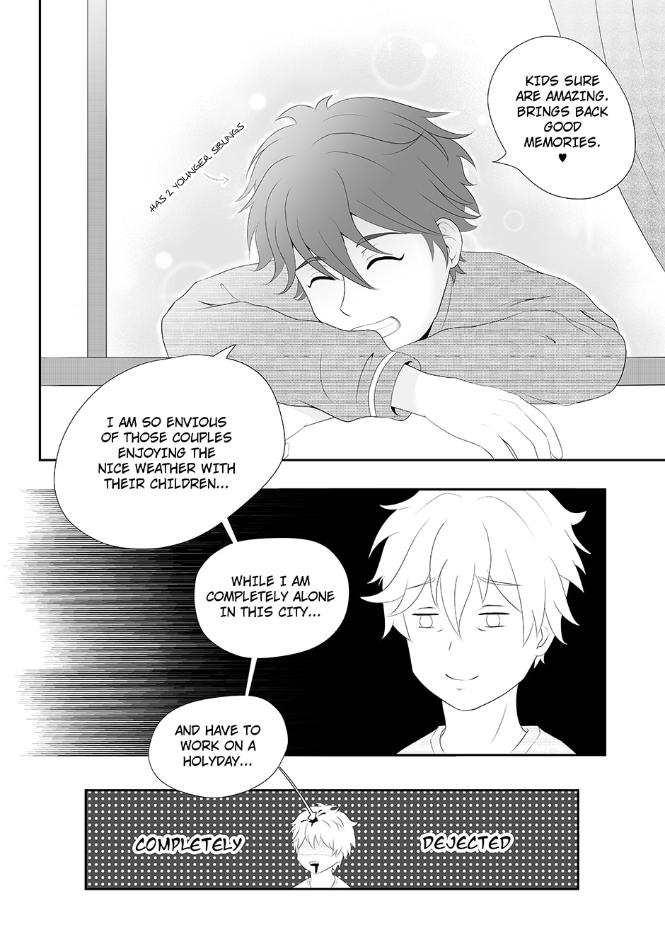 Pages 01 to 04 of chapter 1 of the manga Welcome, Little Sun. @Edit: Couldn't work on this last week and now i am sick, so next pages will be delayed a bit. TAT