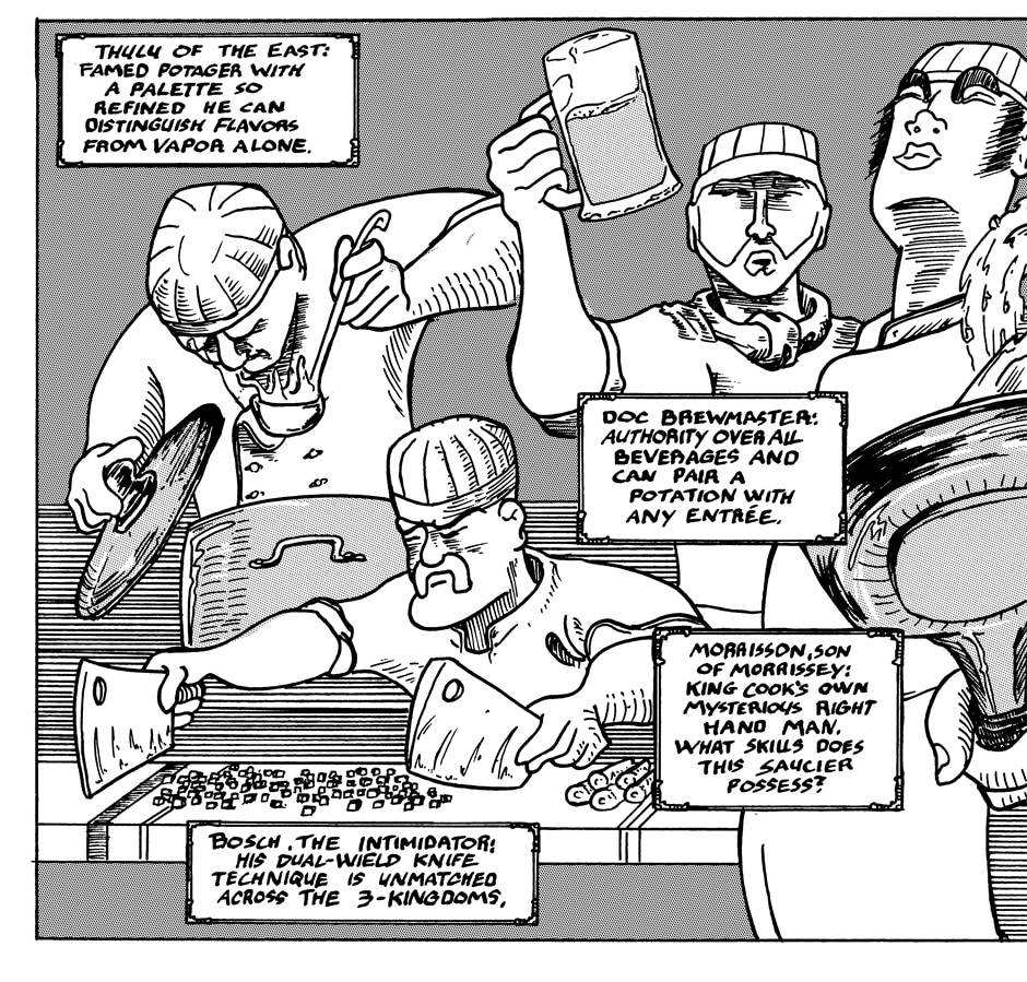 King Cook leads his men, The Red Preppers, through the world of culinary delights while fending off the forces of evil.