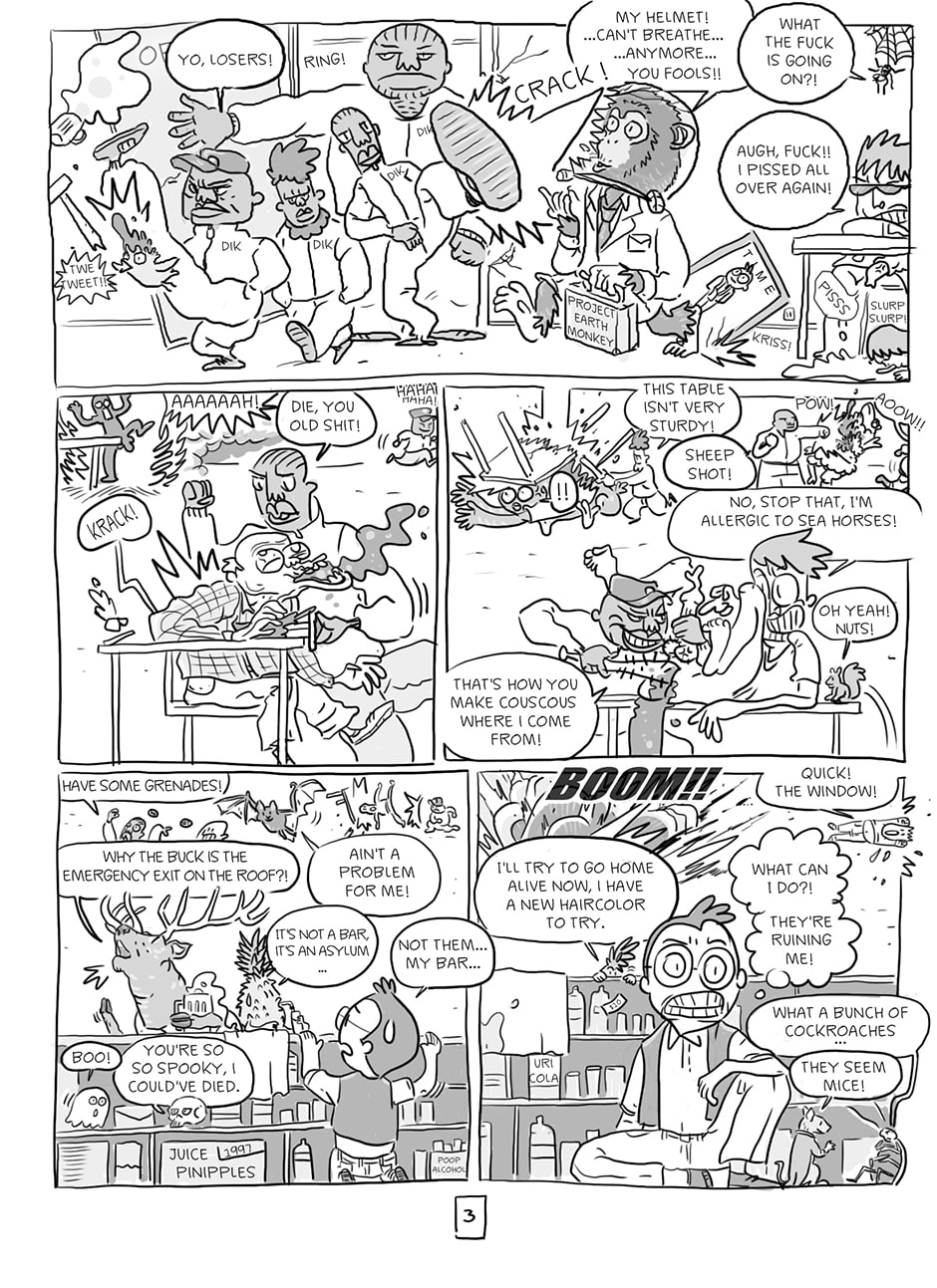 Cosmic Power is a humorous story about an irresponsible bunch of crazy characters living in Cosmic City, a senseless world where everything is possible. Follow them, as they rise from poverty to wealth and start a business where nobody has the slightest idea of what they're doing. I'm working on this comic book with my friend Ludo, who's writing the scenario.