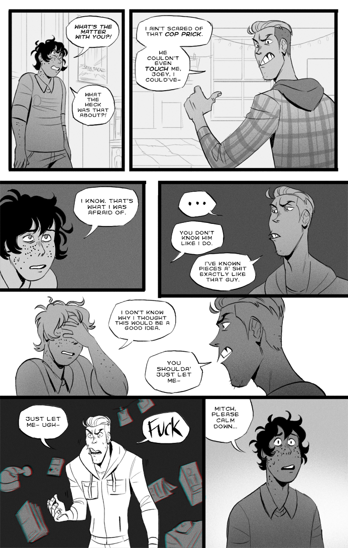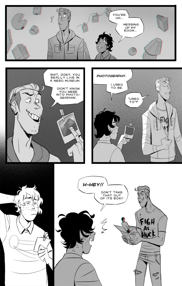 Long Exposure is a completed webcomic about a nerd and a bully who are forced to work on a class project together. The story revolves around them developing super powers after an incident at a strange research center, and finding themselves followed by a mysterious car, overcoming personal challenges, and (most importantly) discovering how gay they are for each other.