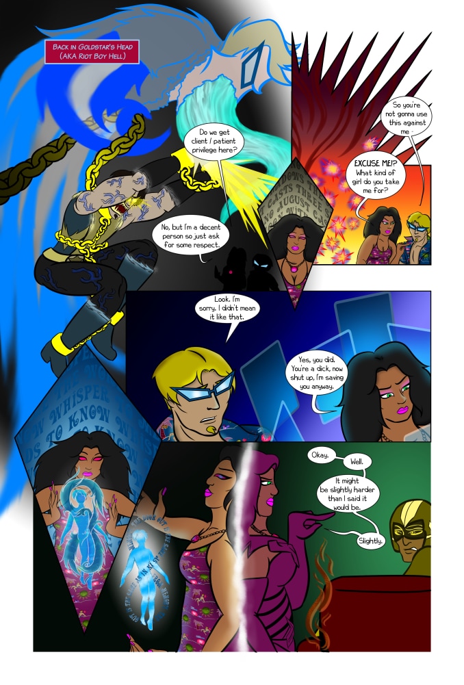 He's 20, super fast, and brand new to this hero thing. He's Kid Riot! Along with his mentors, The Riot Squad, he's saving Old Brunswick, meeting new friends and foes along the way! The Demon Hotel is representing Kid Riot in it's original form for free. Check us out at kidriotcomics.com and on Comixology to read the newest HQ adventures of Kid, Diva, Riot, and the gang!