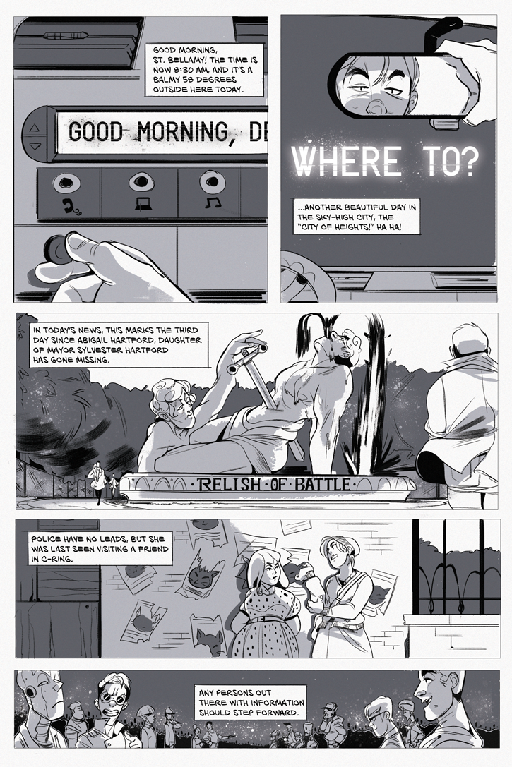 HEARTBEAT CITY is an ongoing queer cyberpunk detective story. When detectives Wolfgang Magnus and Reyna Vivian get wrapped up in mystery compounding on mystery, they'll have to enlist the help of hackers, robots, underground divas, and a handsome new ally in a robot suit to go deep out of their jurisdiction to unravel the secrets of St. Bellamy - both in the real world, and the digital.