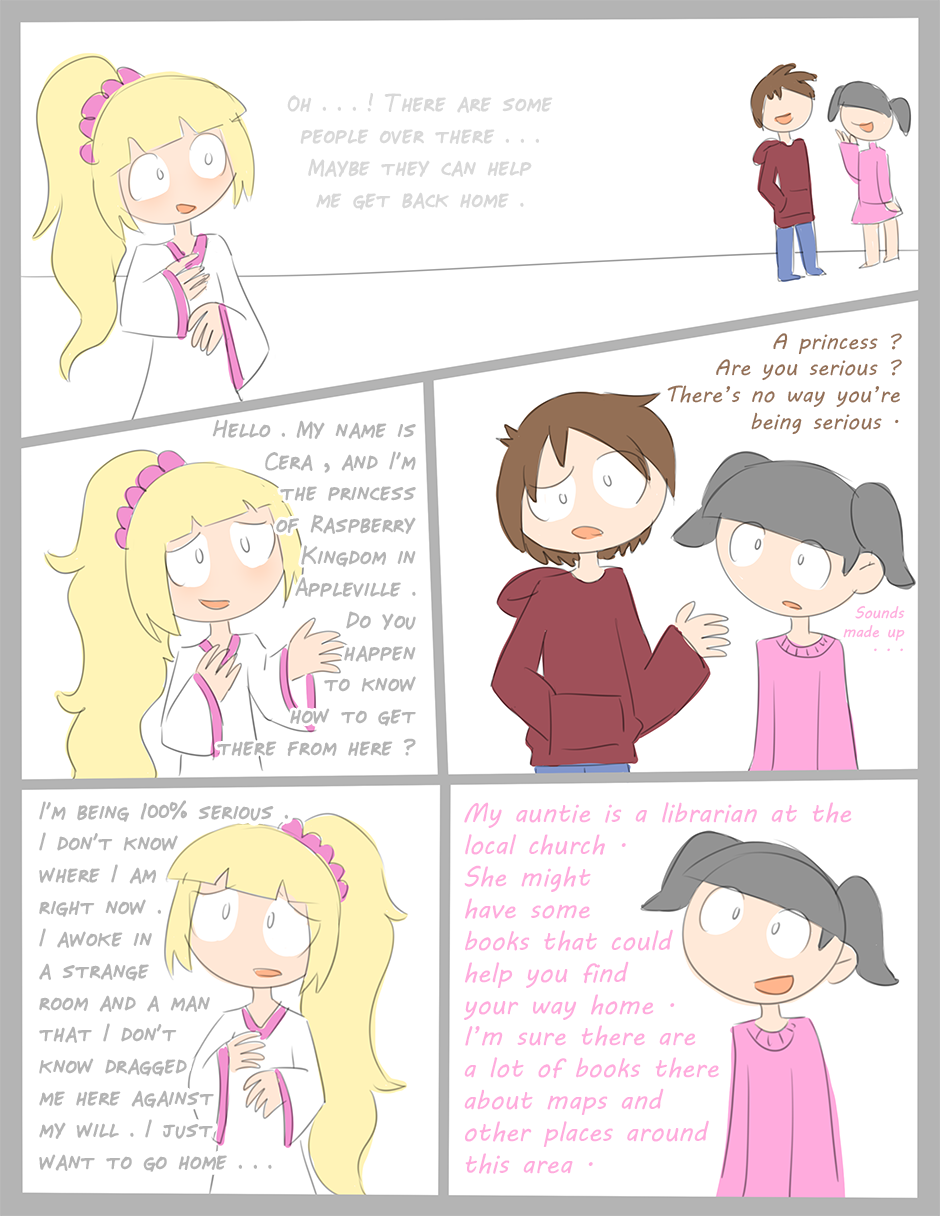 lol obvious kidnapping implying dialogue followed by "Well my aunt sure has a lot of books!" and not "Holy cow have you called the police?!?!?!"