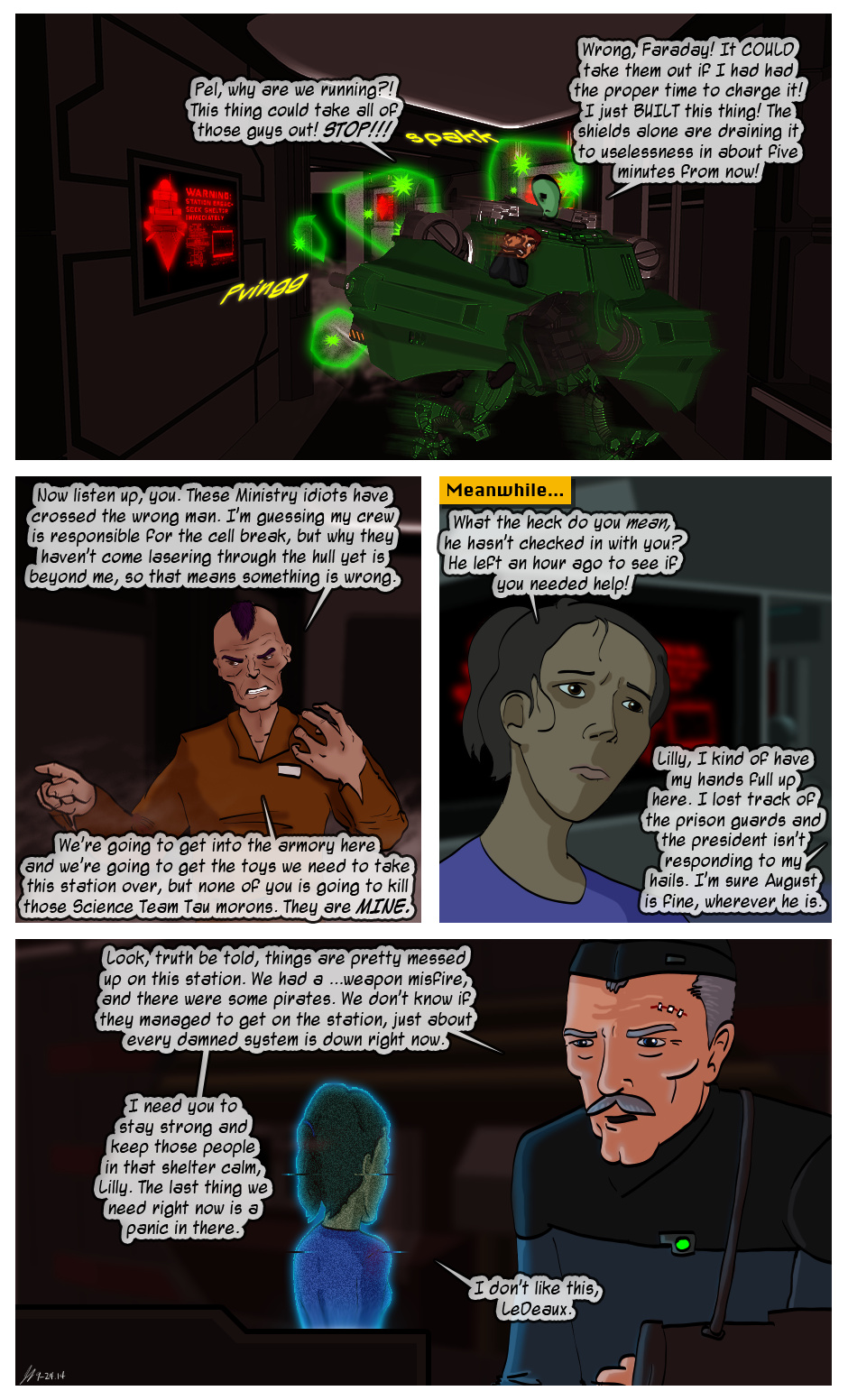 Haha. "We had a....weapons misfire...."(shifty eyes). Also I love the robot's tiny little legs. So adorable!!!