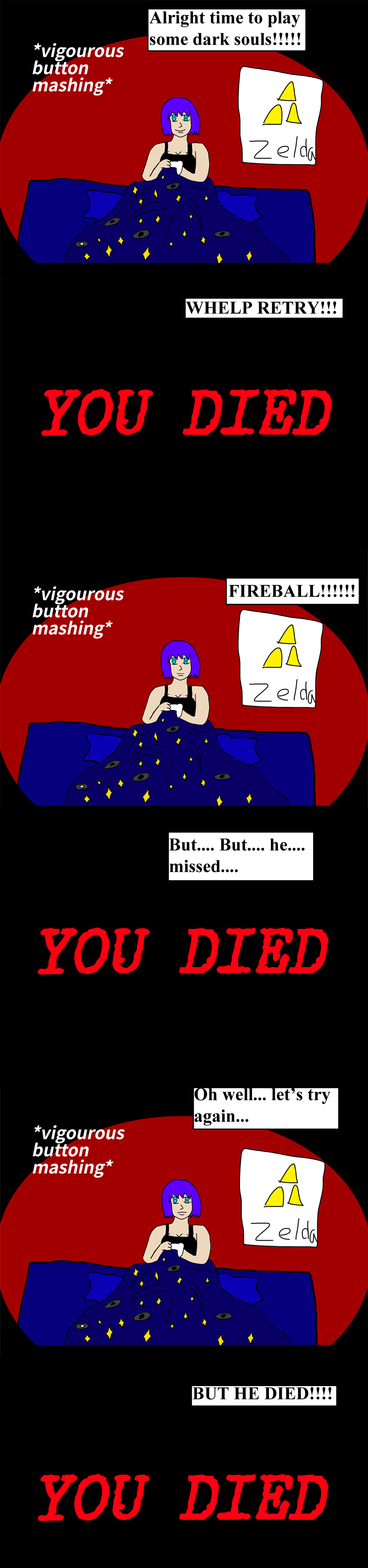 i actually love darksouls and am a veteran to the series, but i have broken around 5 freaking controllers out of anger. also i apologize if this turns out horribly i have never done a comic before.