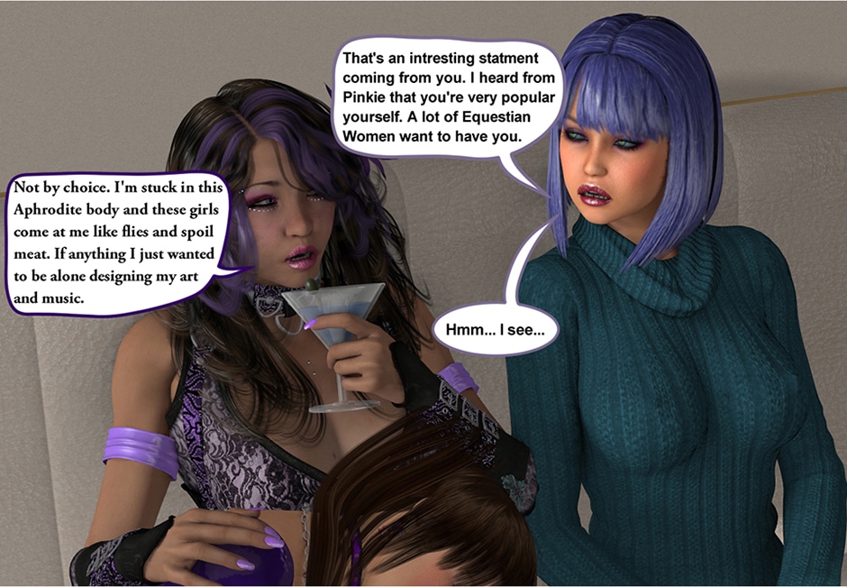 The Equestrian Counterpart are still watching Television and having a light conversation with each other. Little does Maya knows her pony has got inside under Maud's hooves and now her Equestrian Counterpart is about to feel the effect as well.