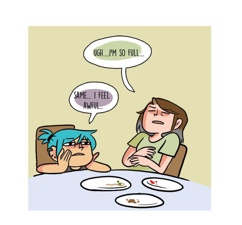 all you CAN eat does not mean all you SHOULD eat...damn those bottomless pasta bowls