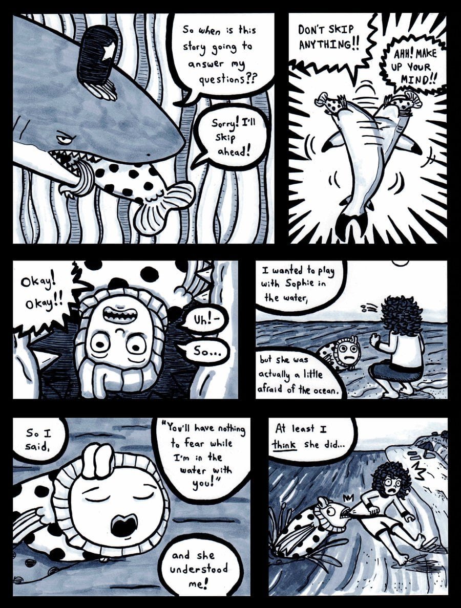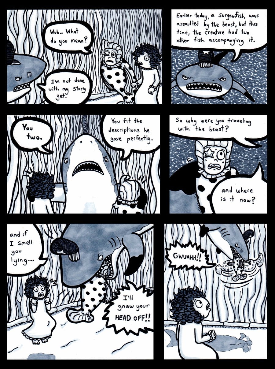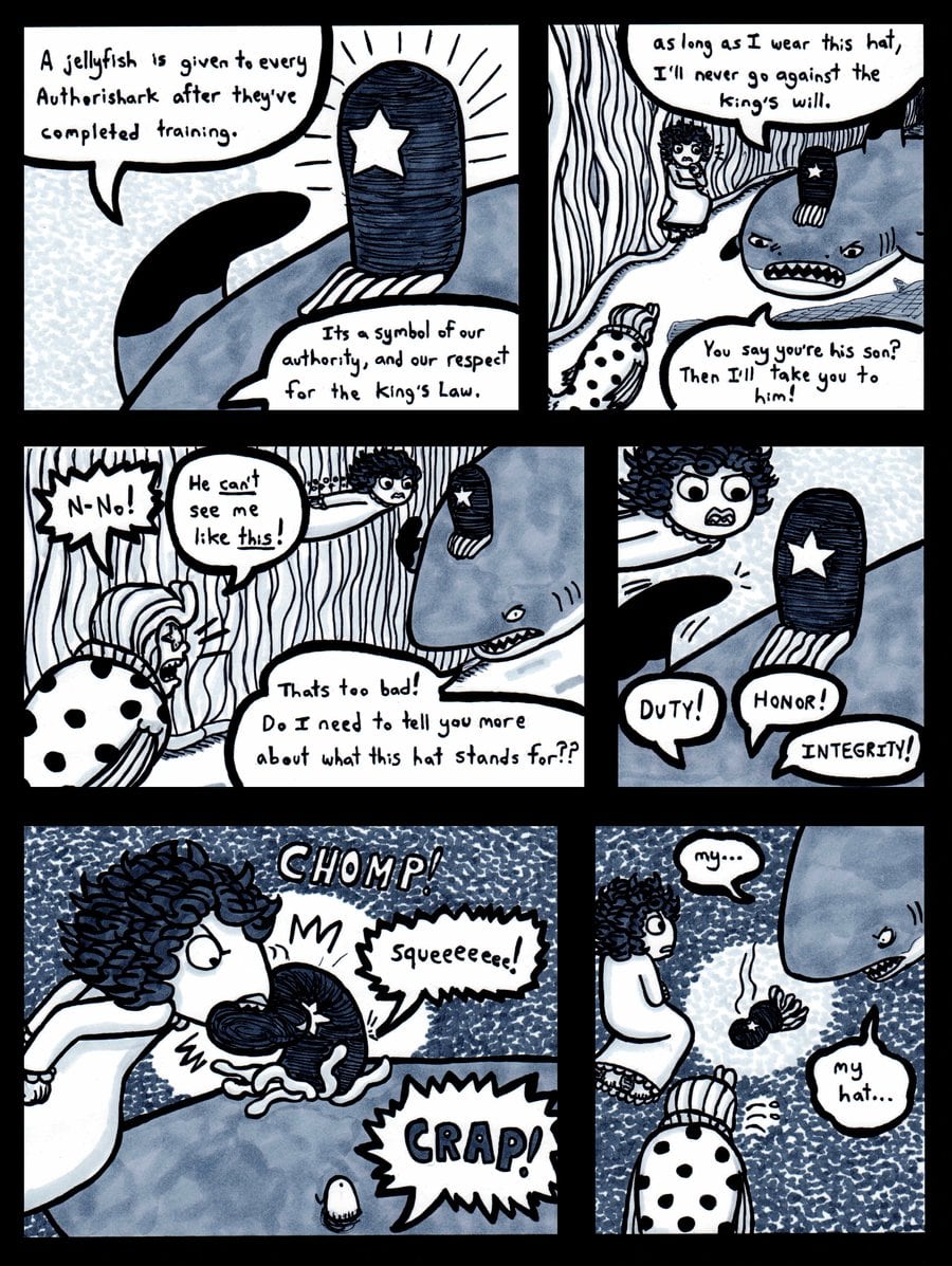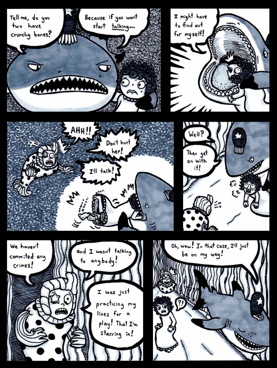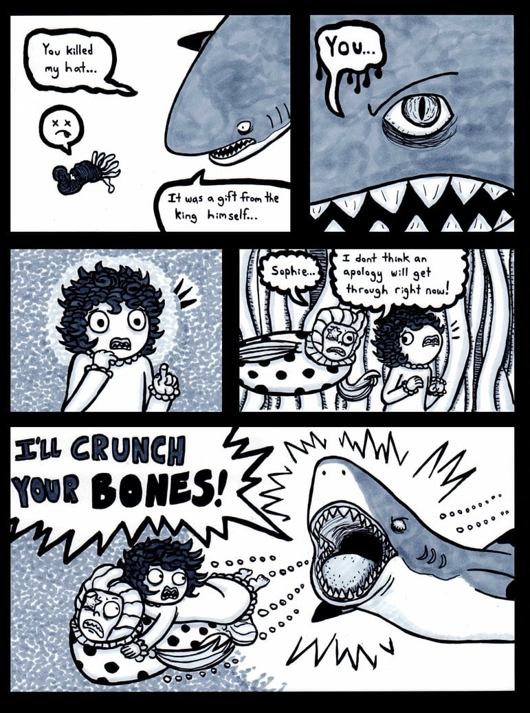 Hans and Sophie are accosted by the shark police.