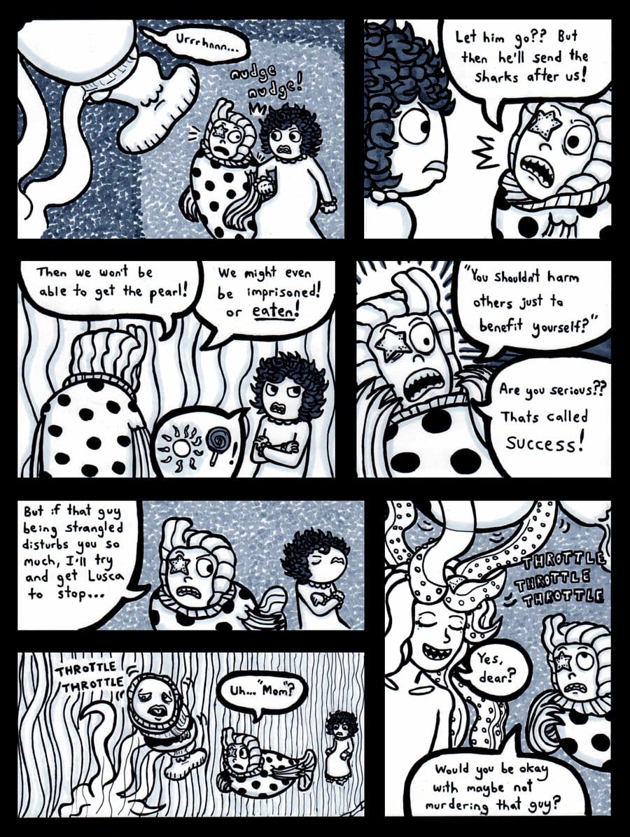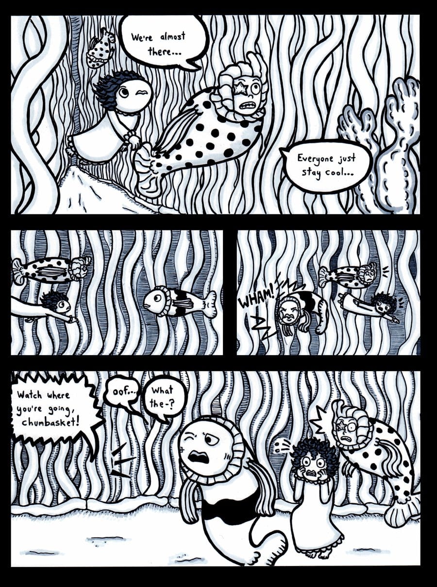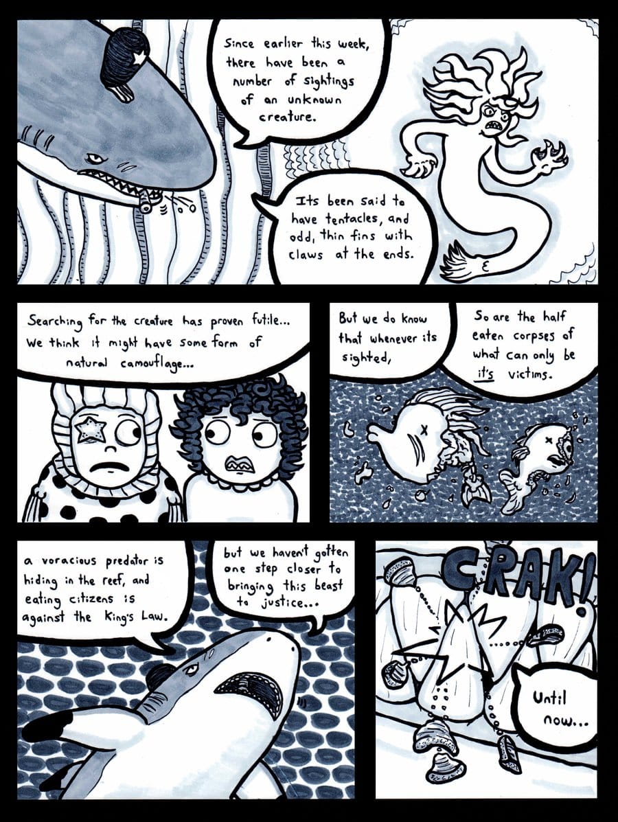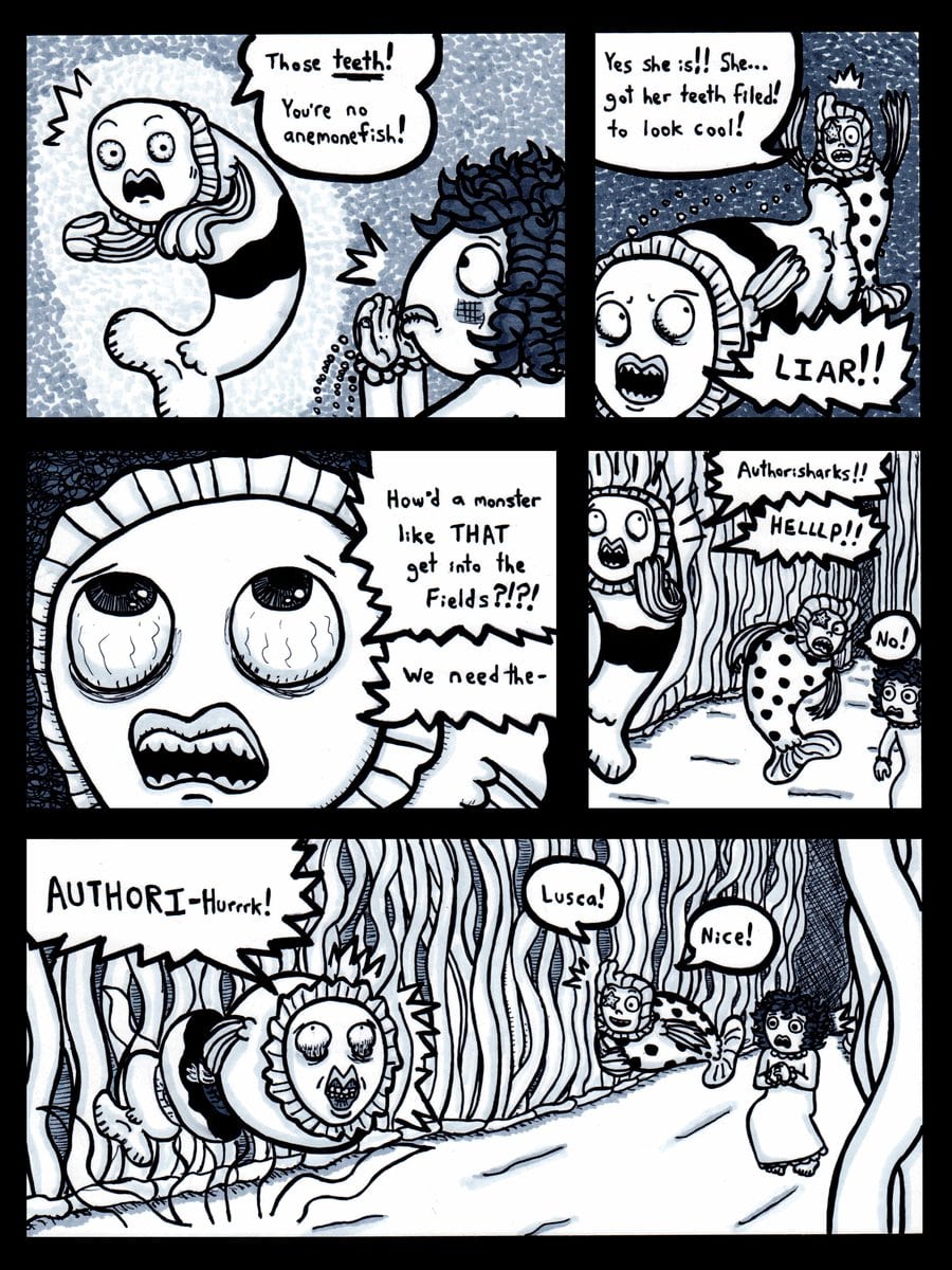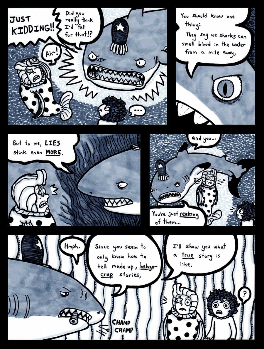 Hans and Sophie are accosted by the shark police.