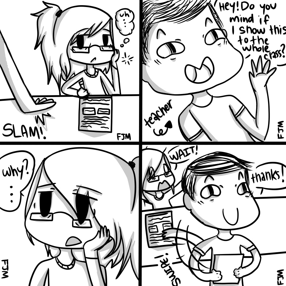 this happened to me not too long ago, and my teacher doesn't look like that, I just didn't feel like drawing him the way he looks.