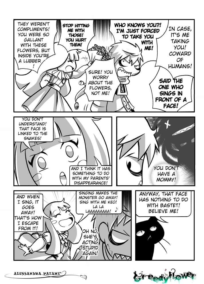 Keo asks Moo about her and Bastet and learns they are running from a monster chasing them. Meanwhile, Kurobo watch carefully the situation, waiting for something to happen.