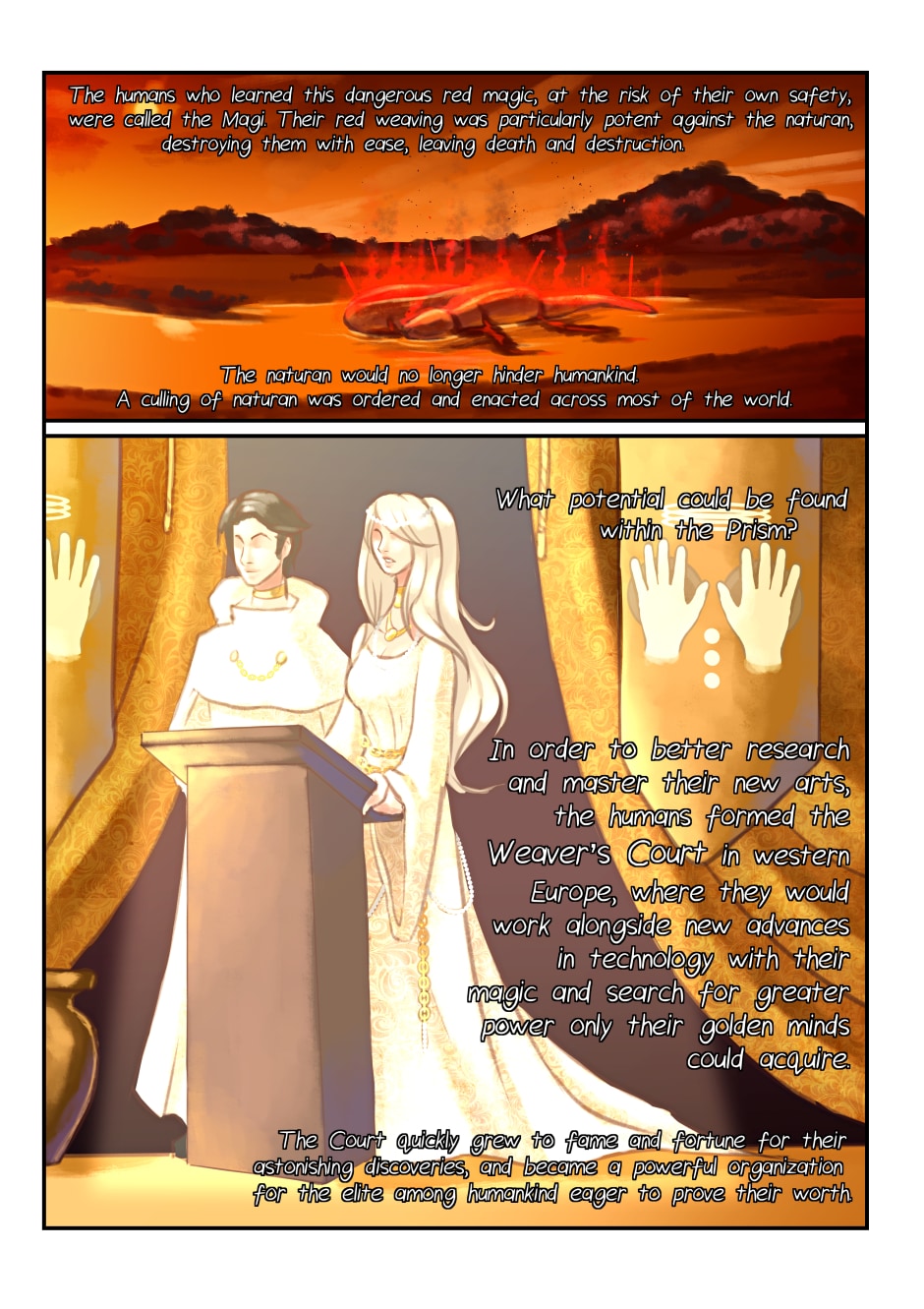 I love the worldbuilding you've done, it leaves a lot of room for adding more if you wanted but also has a very complete structure as well