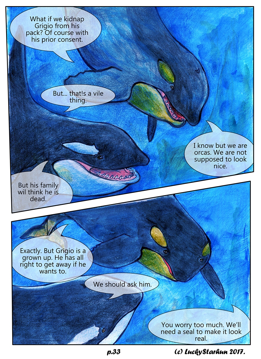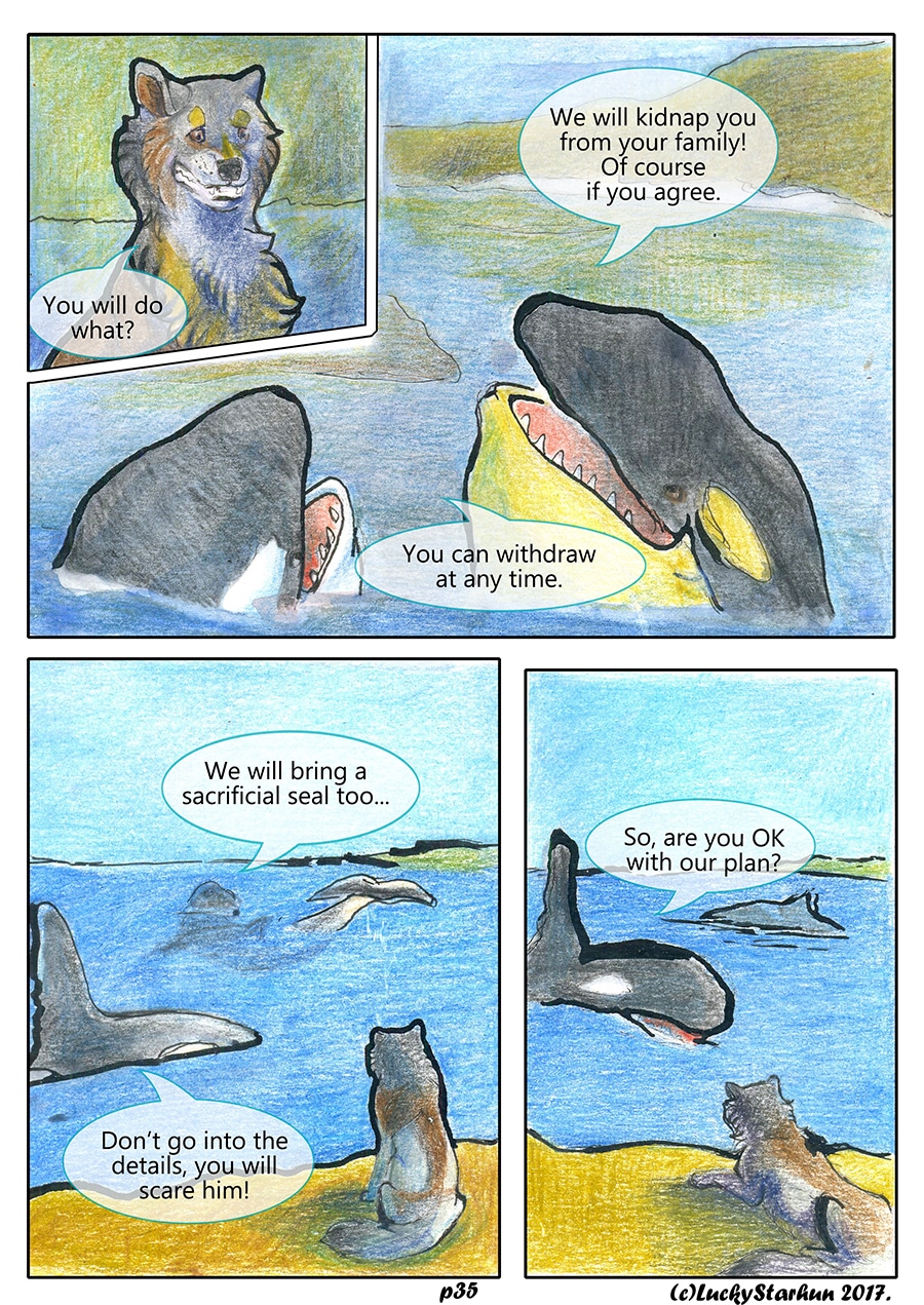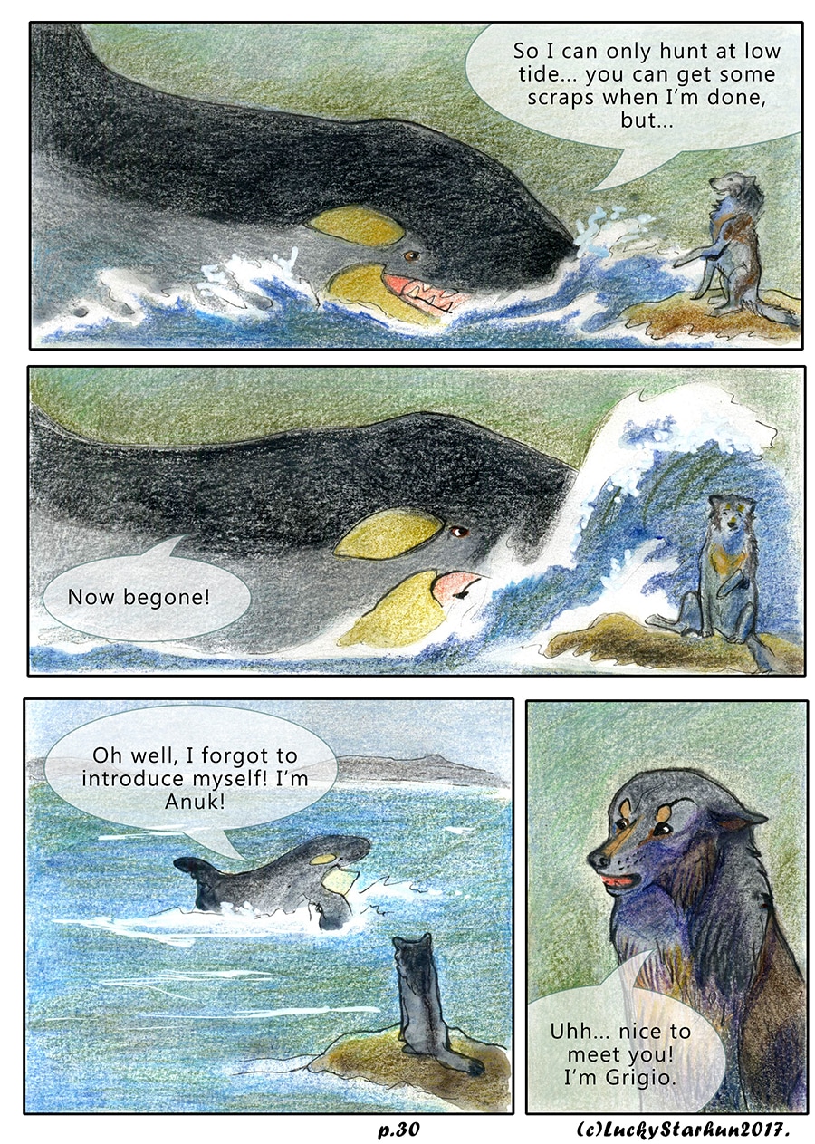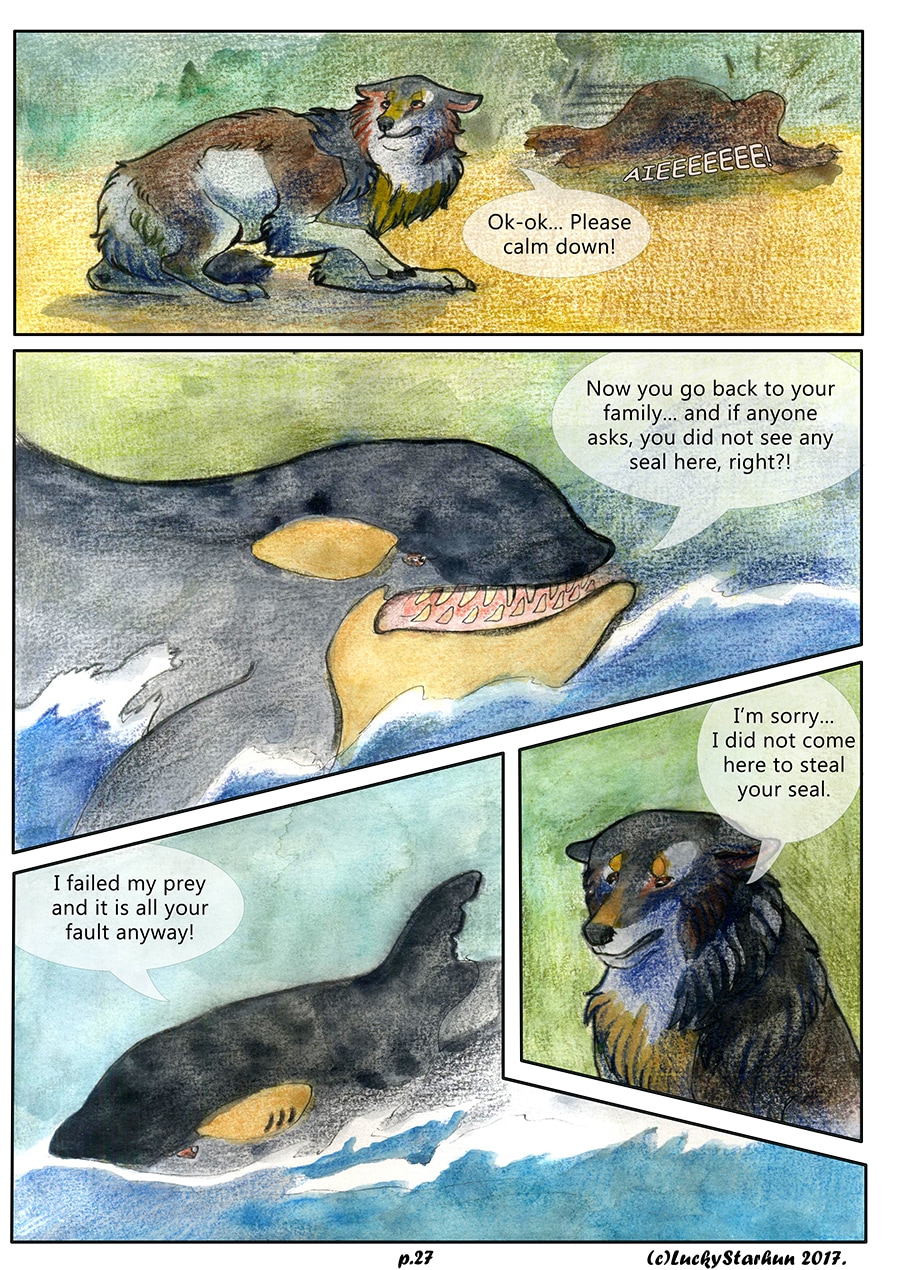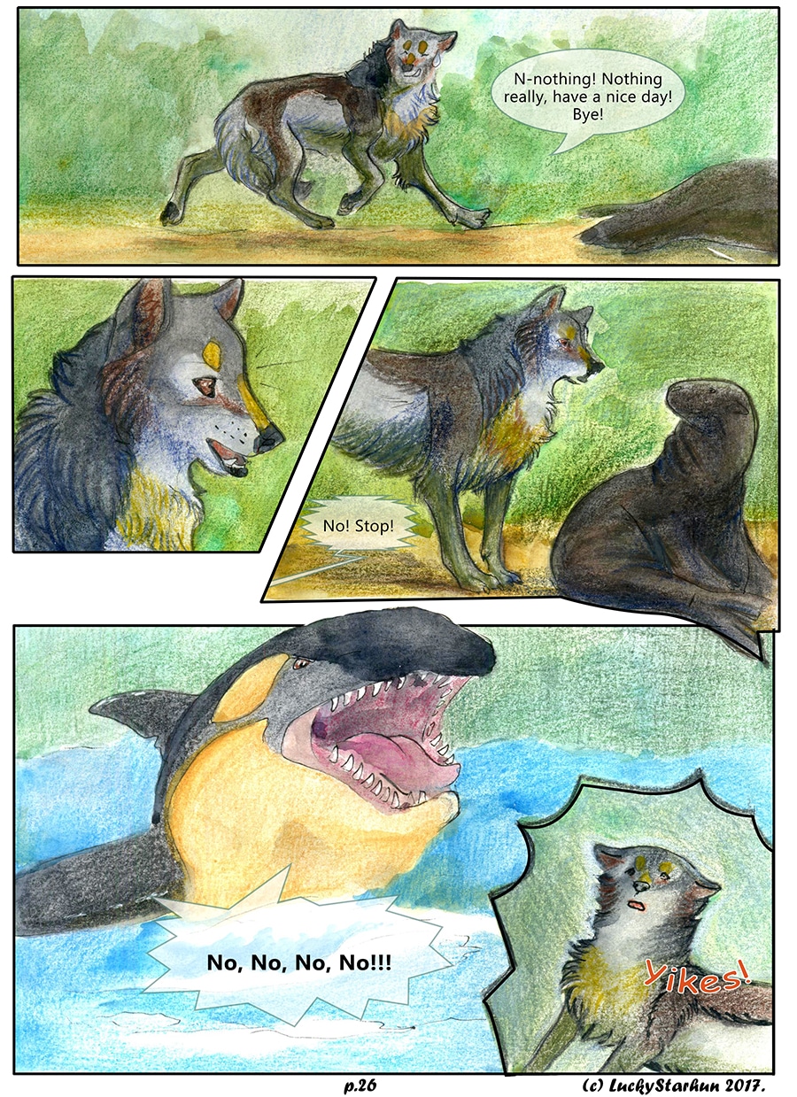 Water Wolves is an adventure comic which takes place in the near future, centered around a wolf pack trying to adapt to climate change. The comic also features other animals. It is suitable for all ages. It contains some topics that could raise opinions about the protection of the environment.