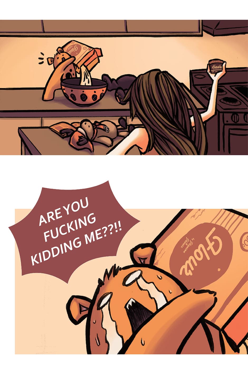 Molly leaves her stuffed toys and the Muffins mix alone on the house while she is out buying ingredients, what could possibly go wrong?