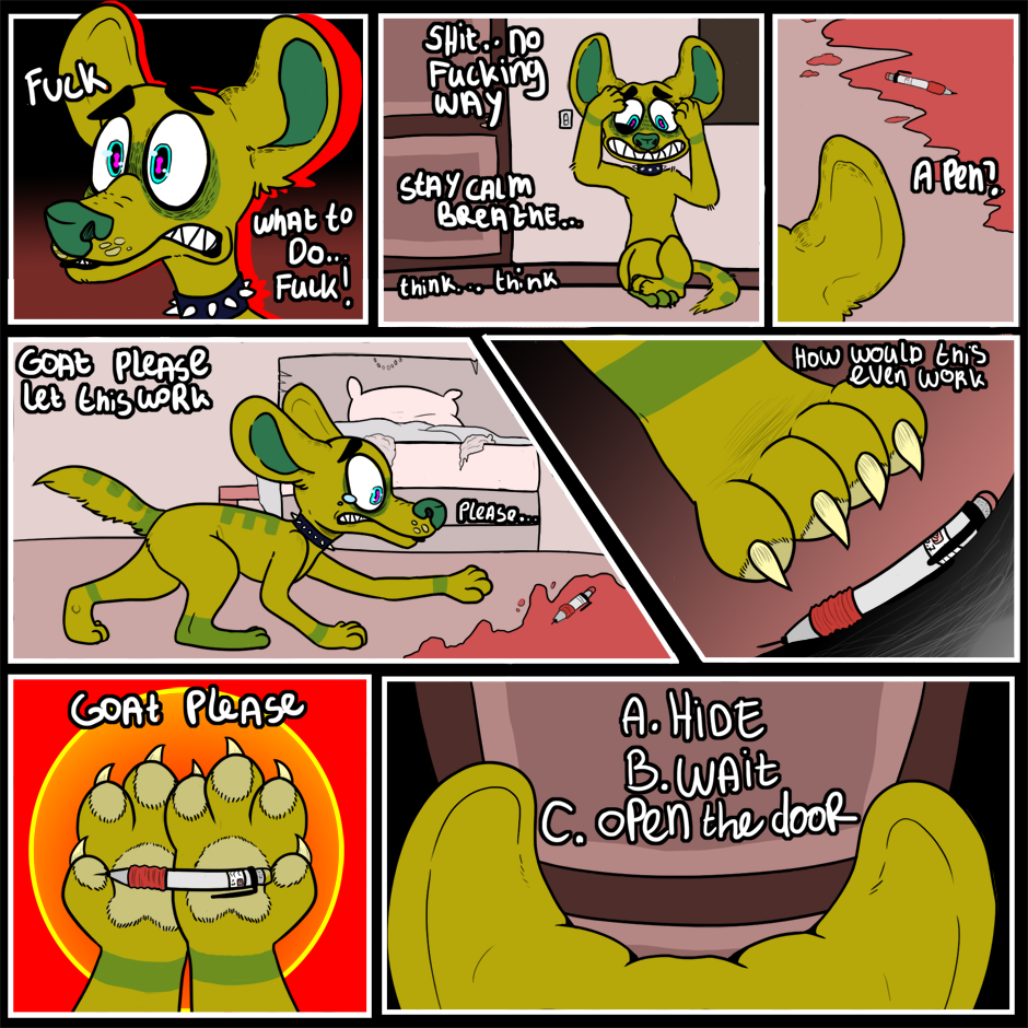 THE COMIC ISNT DEAD I PROMISE! just been busy sadly. but hey new page new votes! Last time you guys voted on pickin up tha mech pencil what will you guys choose now?