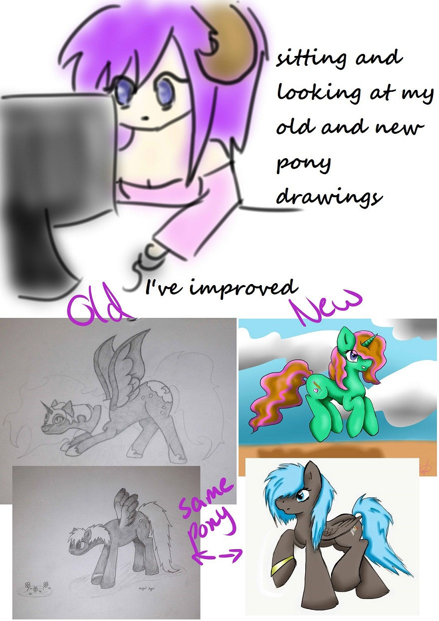 I looked through my google plus profile today, and noticed a change in my old drawings compared to the new. And as you might have guessed, I'm a brony.