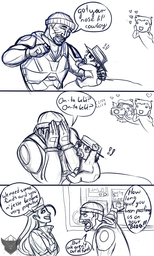 Ana typing : "support this big beefy single lovely dad here so he could spend more time with his little biscuit" Gabe: Delete that!!!! Jack: explain to me that thing of "single"...Ana On-ta- bebé it's the contraction of the phrase "Dónde está bebé?" that is the hispanic version of Peek-a-boo game Ft. Baby jesse