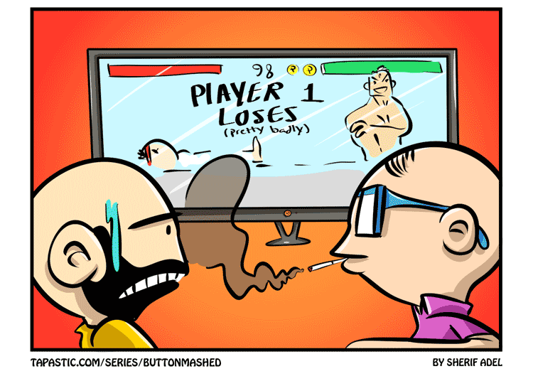ButtonMashed is a webcomic about fighting games and games that aren't fighting games. Created by @Barbatoze. Long time obsessions: Street Fighter - Persona - Metal Gear Solid - Sonic.