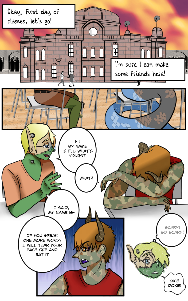 Monsters, Myths and Legends... and they all attend college! What awaits Eli as he starts his first year in this ghoulish school? Nightmares? Torment? Maybe even love...