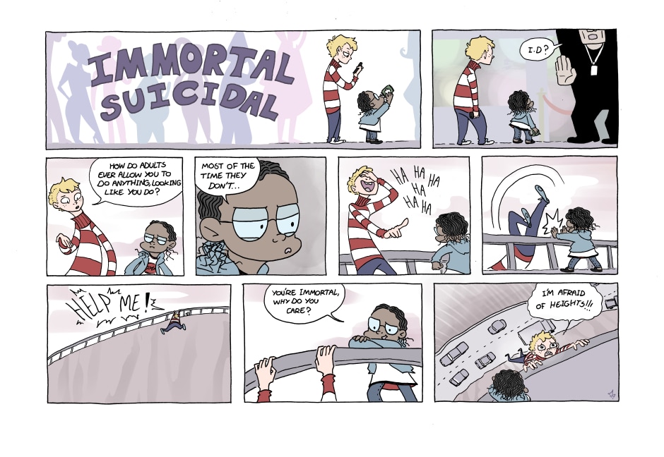 This one should have been uploaded sunday, my apologies. Either way; this is the last one, thanks for reading Immortal Suicidal!