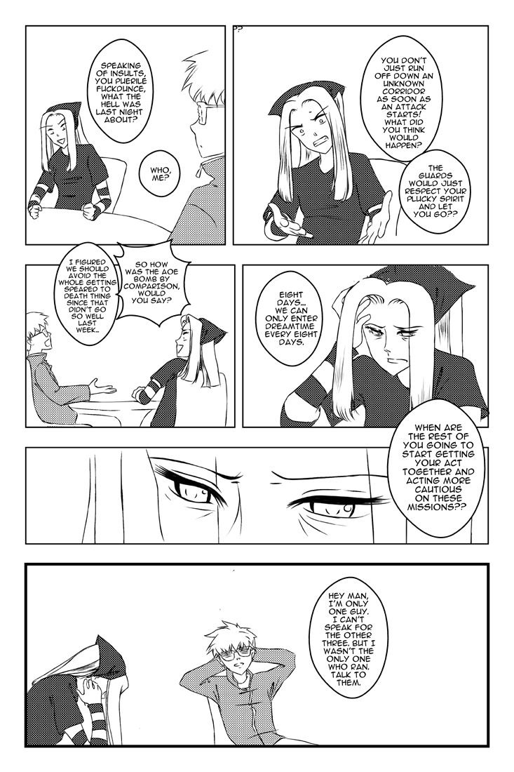We all have our reasons for playing. If we don't wake up, at least we had fun... :) Every 8 days, Maggie and seven of her friends are able to enter a sleep deprivation-fueled dream state full of castles, monsters, and strange magic. The only possible course of action? Turn it into a giant role-playing game.