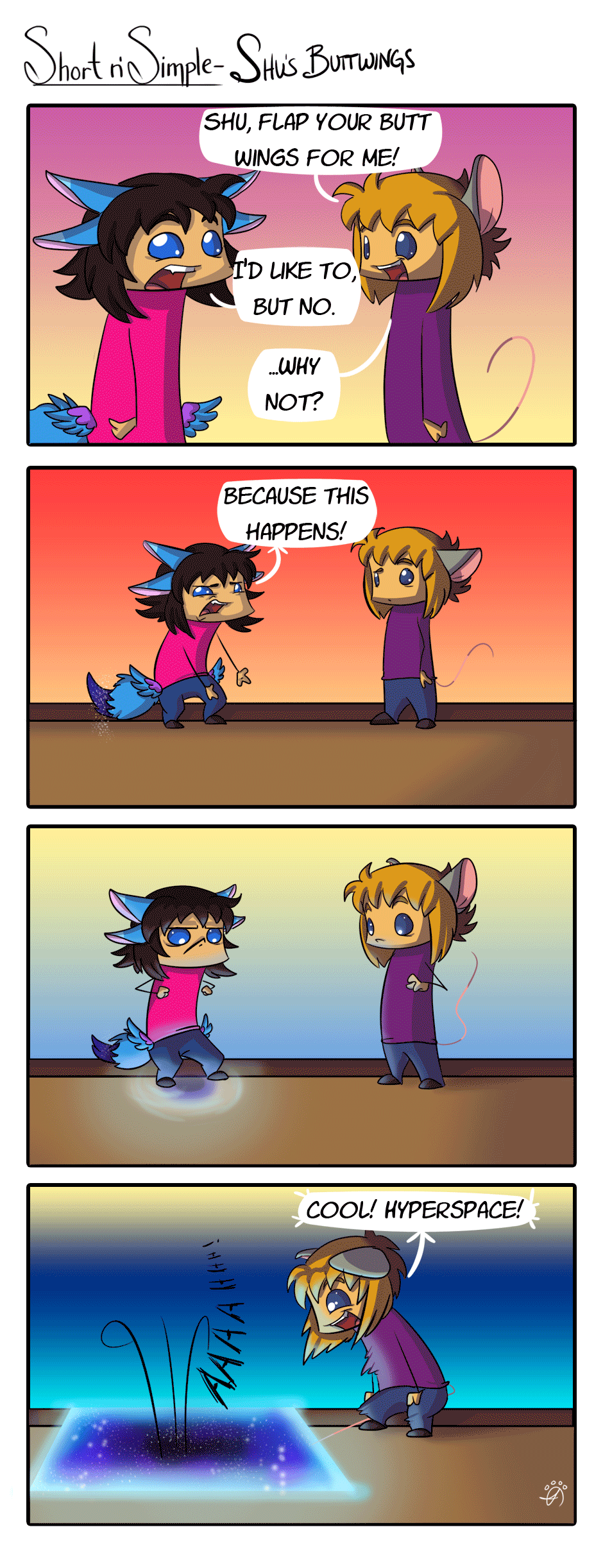 So that's what his butt wings are for....HYPERSPACE. Also, I tried a thing! It's not much, but I knew no other way to get the point across xD