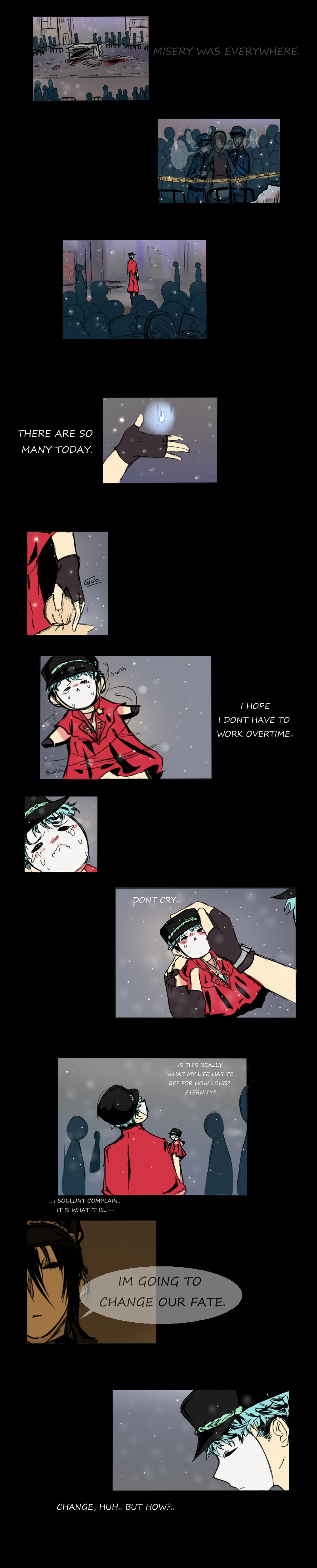 Axel was born under the goddess of misery and sadness, Achyls, and was set to work as a misery worker. A misery worker is in charge of accelerating a person's misery and sending the tears and pain shed up to the goddess herself. Axel absolutely hates his job but with the help of his friend they both set out to find ways to change their dreaded fate from having to stay in a world where betrayal is common.