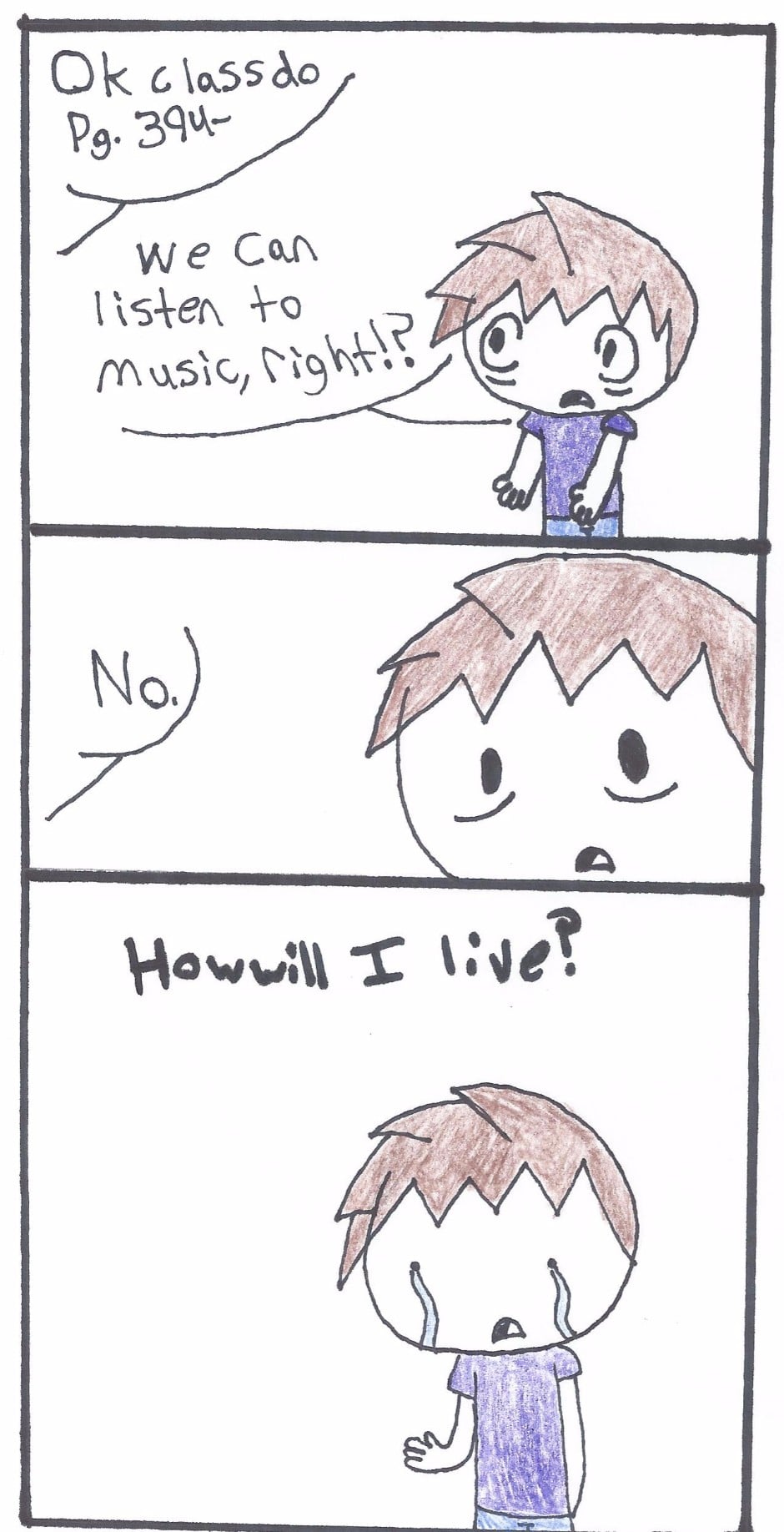 My class had a substitute, and she wouldn't let us listen to music.