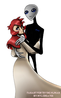 So, I'm a big fan of IntroducingEmy's, Trying Human. (Favorite character is Hue, he reminds me of a happy version of Sketaldaz from Hacheeachkee <u<). And I'd imagine she's probably not feeling the best at the moment, so I decided to draw her some Fan Art (cuz, what else really cheers up any artist? ;D). So, Emy, I hope this cheers you up! *fist bump* Off I go to work on architecture stuffs.... at... 3 in the morning... =꒪ᆺ꒪=