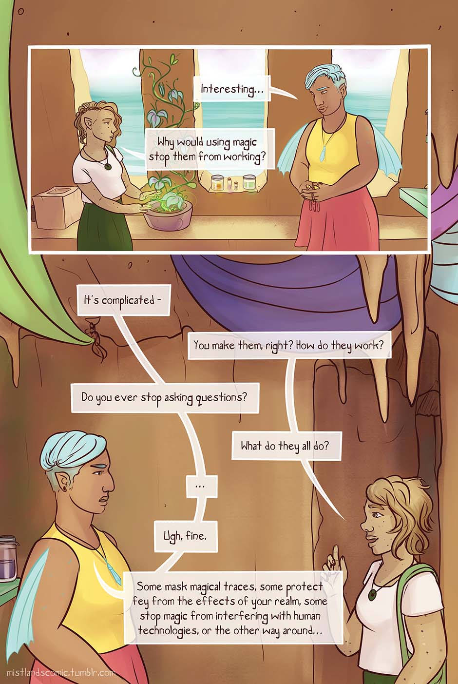Lots of questions! (If you're enjoying Mistlands so far, please consider tipping me on the Tapas app! Or becoming a patron for access to early pages and sketches! http://www.patreon.com/layaart/ )