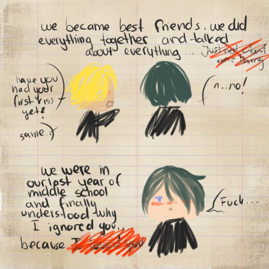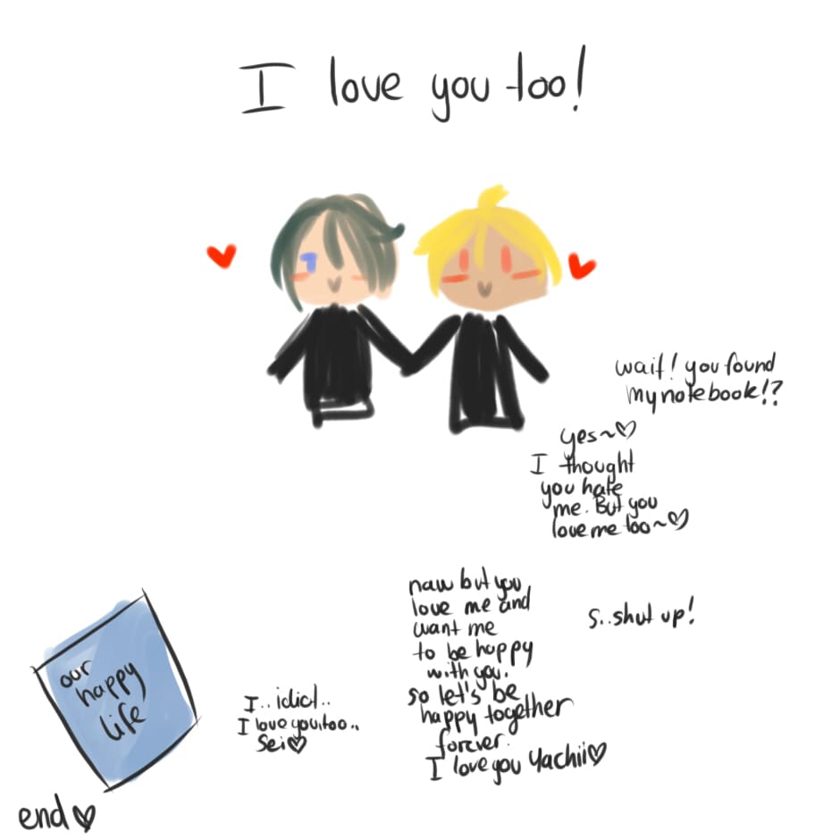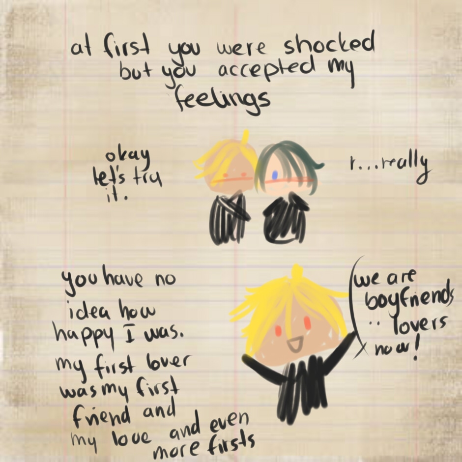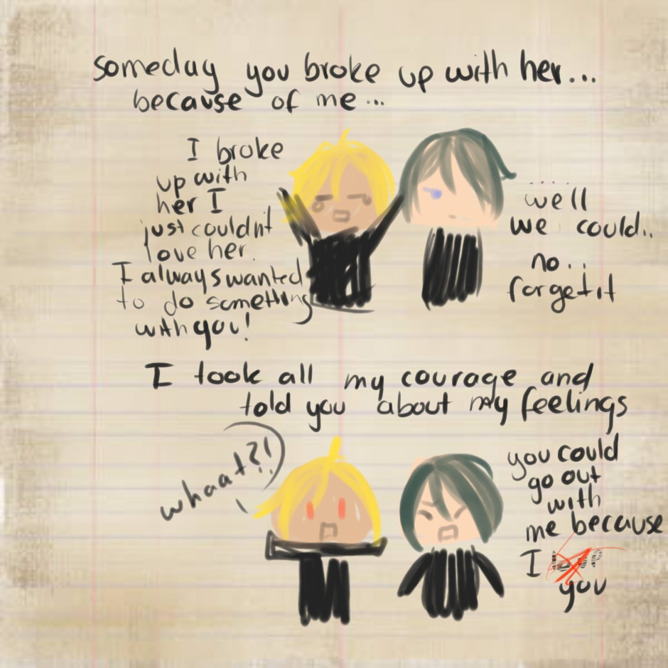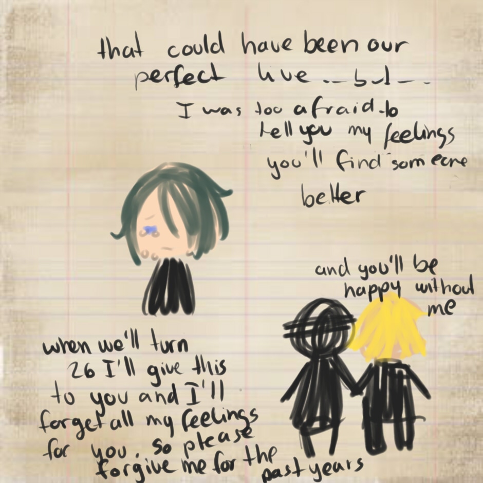 Anyway. I had this idea where one of them wrote a "diary" of their love life how it could have be, but it was shown as it already happend, but it didn't so. eh.. yeah. I had the urge to draw it so here it is.