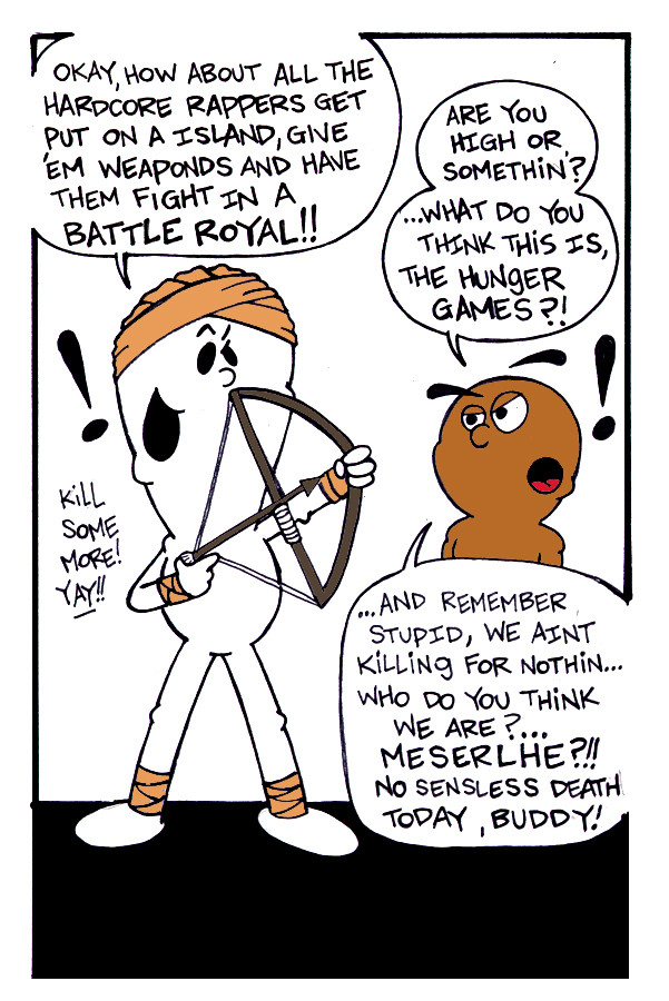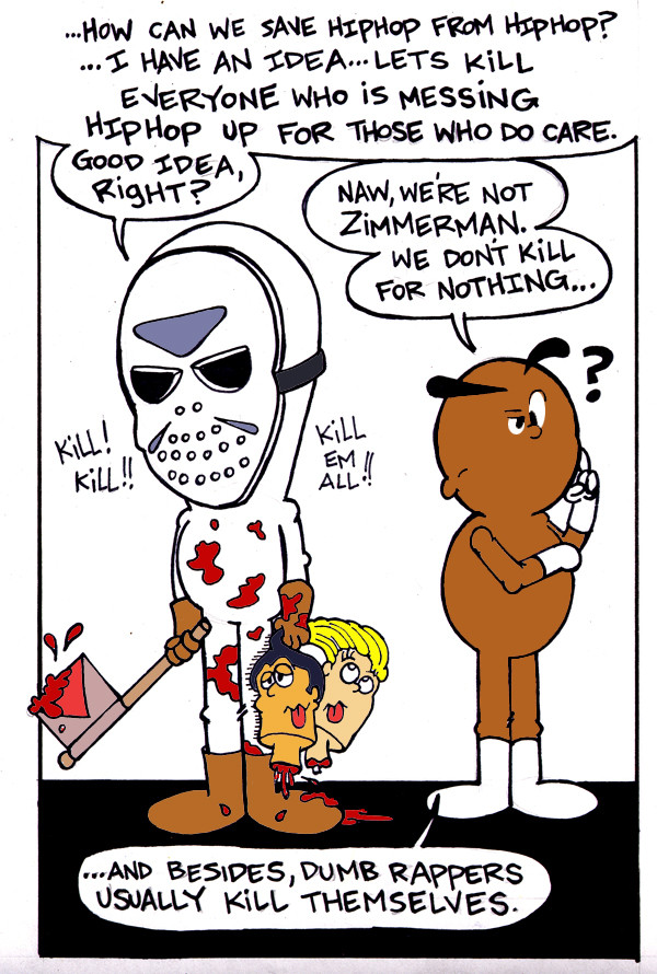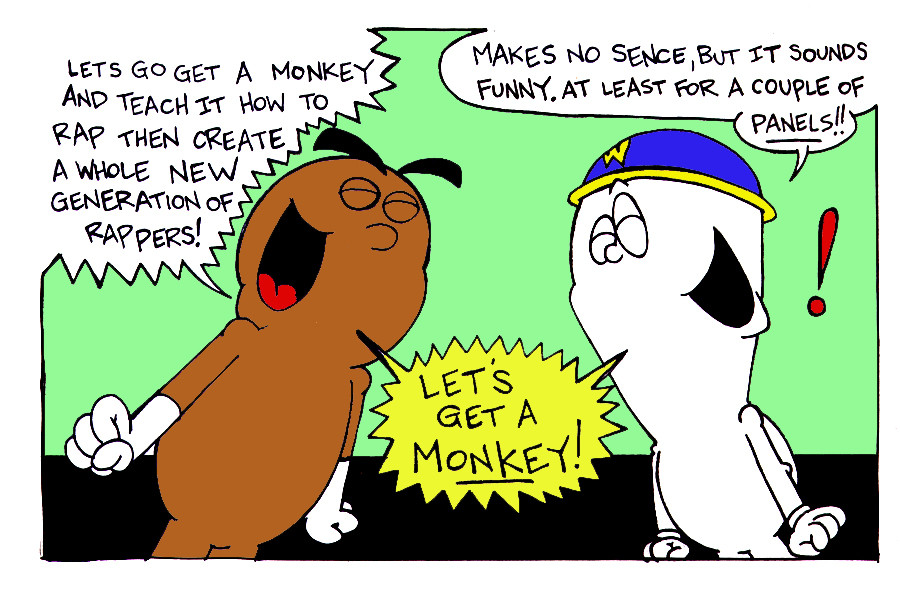 The fourth installment in the exciting series of rapping apes with Hip-Hop Heroes Won & Phil. Phil tries his best to reason with Won as to keep a clear head when it comes to what to do with Hip-Hop. Won will do anything! Kill, be a clown, even throw a kitchen sink on his head! Check it out!