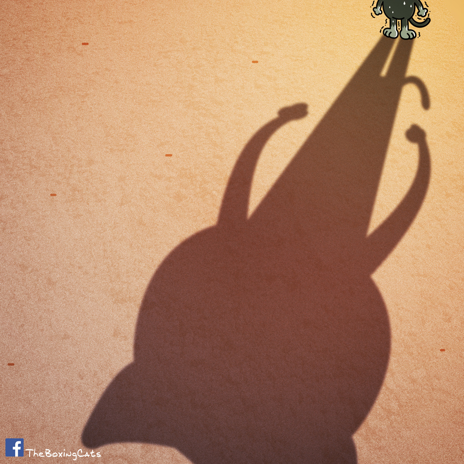 I like that. His body is weak but his shadow is strong. It could signify, depending on which way he faces, that his past has made him strong or that as long as he keeps moving forward he'll grow stronger. That's a great message, intentional or not.