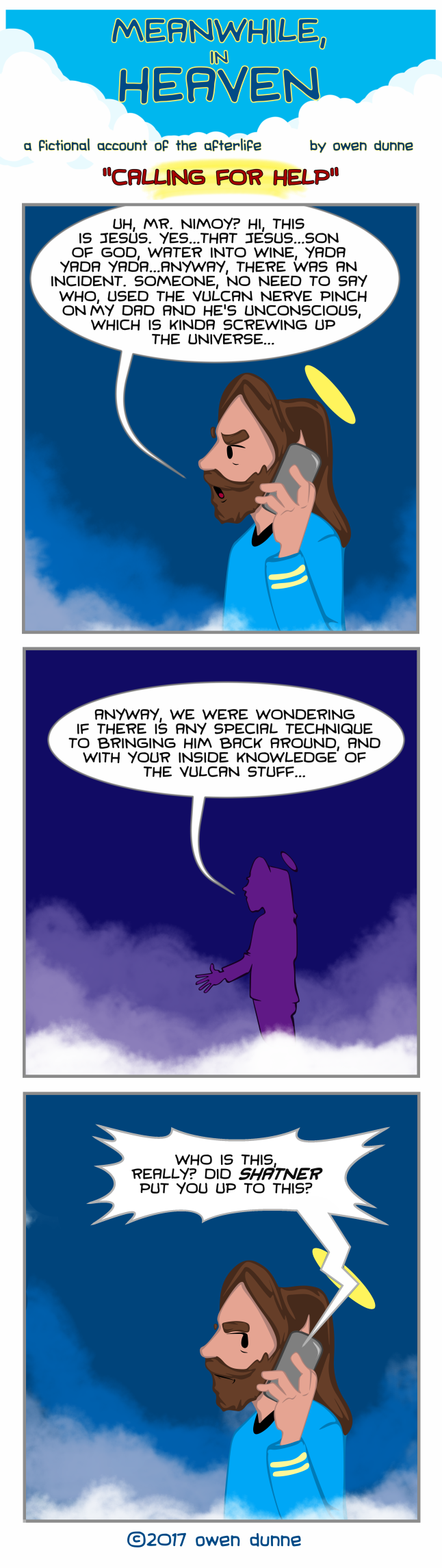 Welcome to Meanwhile, In Heaven! Ever wonder what the Almighty really thinks? What’s really going on up in the great hereafter? Well now you can find out! Join us every Monday, Wednesday and Friday as we follow the adventures of the Heavenly gang! Every M-W-F