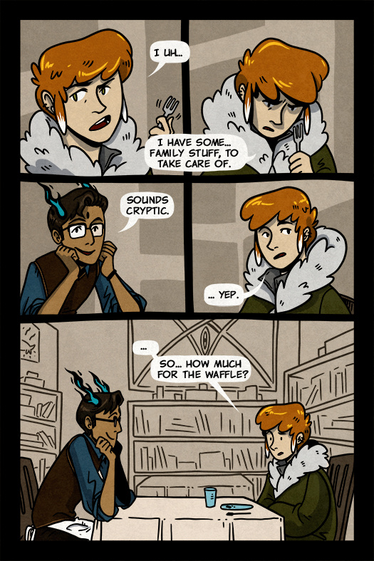 I really, really like this webcomic so far. I run a list of LGBTQ webcomics for The Slash Pile tumblr and I've just added this one to it. I've been keeping an eye on it to see where it was going and I'd normally wait until a webcomic was a bit further in before adding it, but this has such clear promise that there's no point in waiting. Anyway, a few things. What kind of maturity rating do you think this should have? I've guessed at a teen rating, but please let me know if you think the content will be more or less mature than that in coming pages. Also, what kind of LGBTQ content will there be? I've put it in the m/m section for now. Finally, do you have a non-animated 200x40 banner I can use to link to it? Thank you, and keep up the fantastic work!