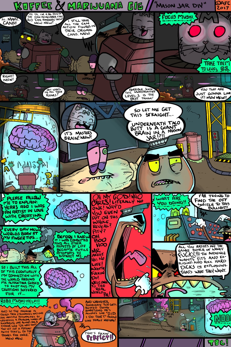KnMC is a one page recurring comic focused on absurd humor, personal development, social commentary, and all things weed. These comics are being created for tapastic first and have never been published before, but I do have oodles of other digital comics (and several are free!) available to check out at gumroad.com/afccomics