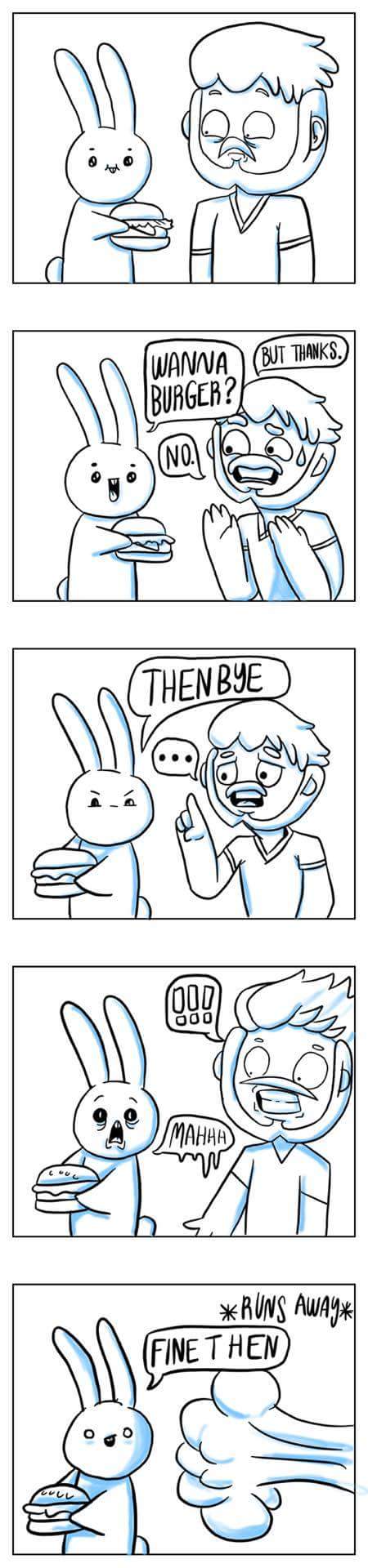 Bunny asks me for a burger and I nicely replied no, things don't always work your way.
