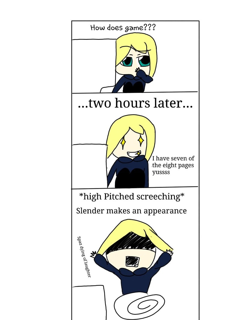 my dad traumatized me with this game when I was eight. Now I play it and make fun of slender's nonexistent eyebrows.