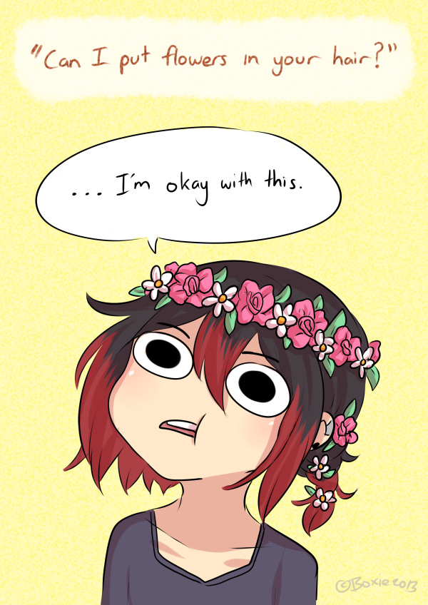 in korea, people with flowers in their hair, are usually mentally disturbed ppl :)