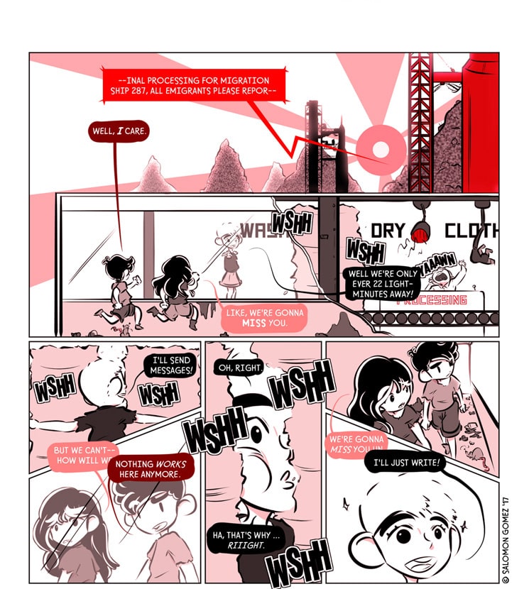 In the distant future Earth is so covered in crap no one wants to deal with it anymore, so humanity turns starward to start anew on Mars. Whatever obstacles stand against us we'll always look forward and move onward, bouyed by our greatest ideals: ingenuity, community, and above all else, freedom.