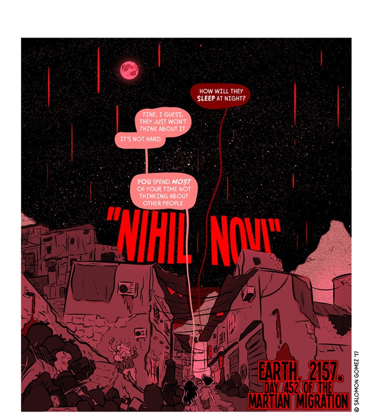 In the distant future Earth is so covered in crap no one wants to deal with it anymore, so humanity turns starward to start anew on Mars. Whatever obstacles stand against us we'll always look forward and move onward, bouyed by our greatest ideals: ingenuity, community, and above all else, freedom.