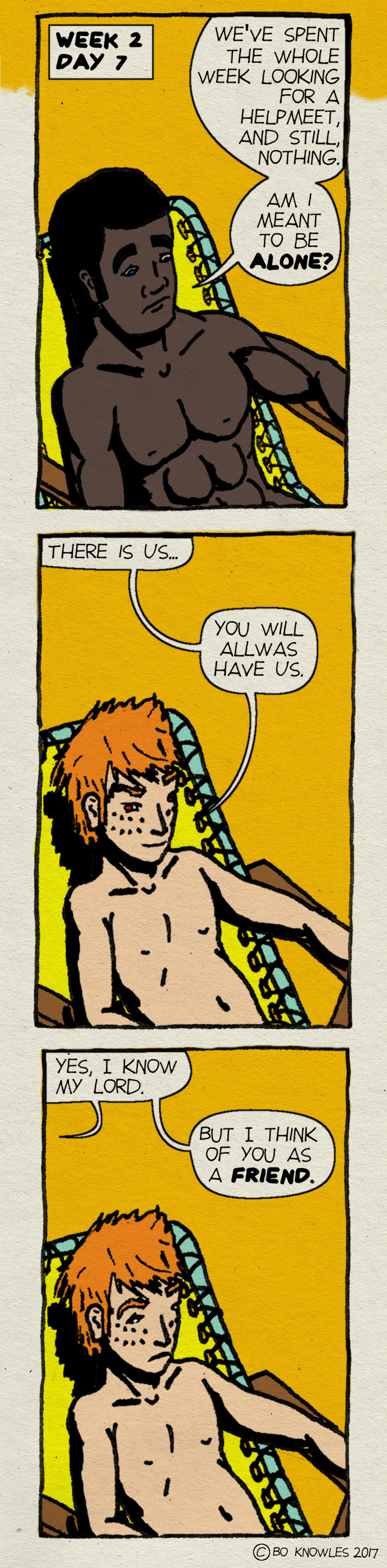 Will Adam and God find true love? Find out in Chapter 3: Love Sucks!