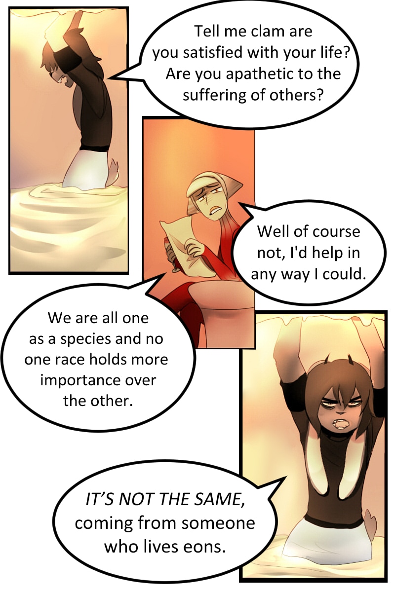 In a land where humans have gone nearly extinct, and the power of the arcane has taken grasp. A sentient group of strange creatures now rule the land with bias, prejudice, and civil wars rampant across Aeona. A Shark named Birgus has been stranded on land all his life. Though he and his kind have been deemed dangerous warmongers Birgus is determined to solve his problems with peace. His adventure begins when he stumbles across a malevolent Fioria, who wants revenge on his kind.