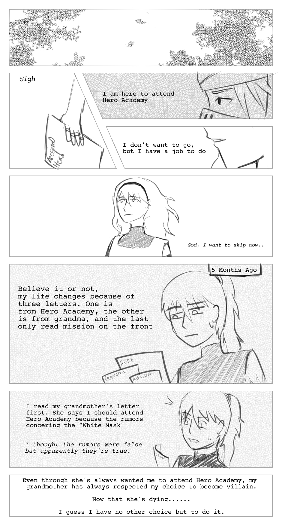 (Hiatus Process) A young adult is a villain and attends a hero academy because of her grandmother is also part of a hero. She will face the Hero Society and save the world from the white mask?