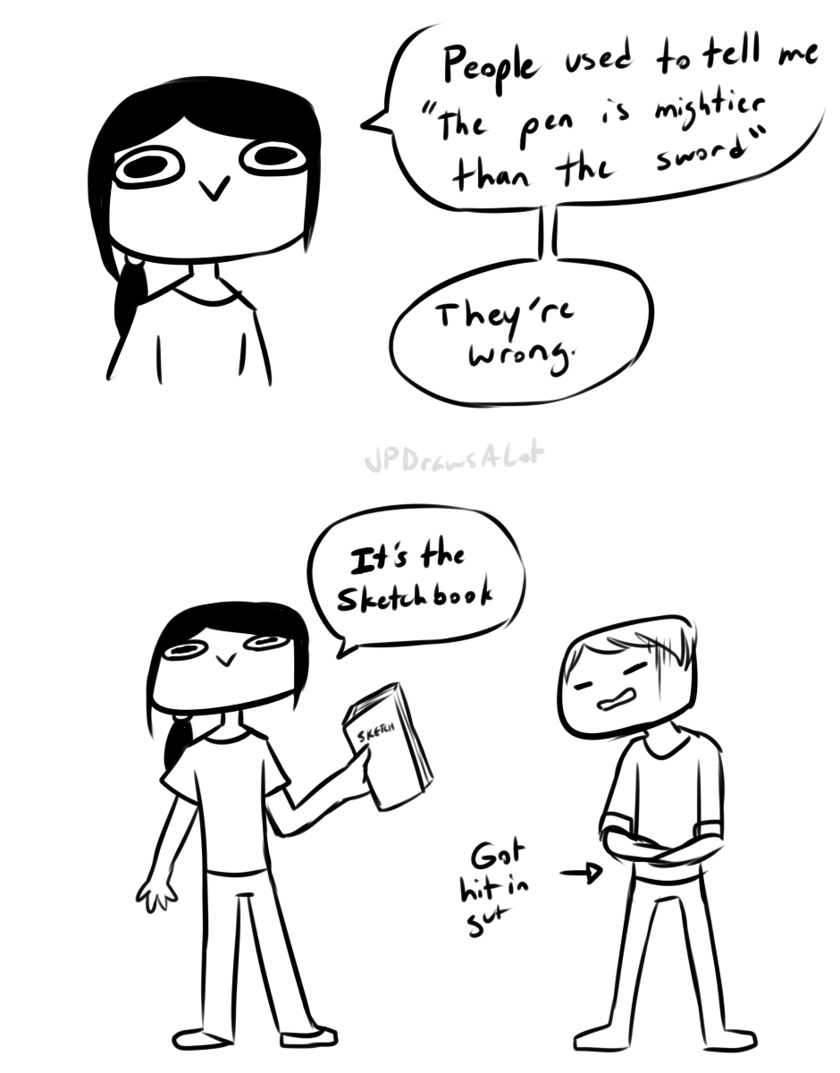 I hit a guy in the gut with my sketchbook because he tried to take my sketchbook and in the process almost tore out a few pages. I will defend my baby.
