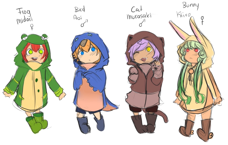 Ngu's and mine childs. xD [You know "Ouran High School Host Club" all of them are like the twins. No real incest but flirty as fuck. xD] Oh I love them. Midori is the first child. Murasaki the second child. Kiiro the third child and Aoi the fourth child. uvu