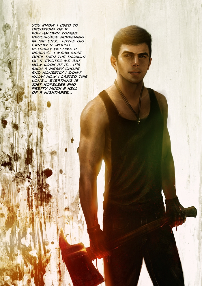 It Ends Here is a 'zombie' apocalyptic webcomics by Paolo Ramirez. It follows one man’s day to day routine a year after a global outbreak of the Helena Virus that infected much of the world population and still growing. He make his way through the city facing hordes of ravaged foes as he looks for answers to survive. But, nothing is what it all seems.