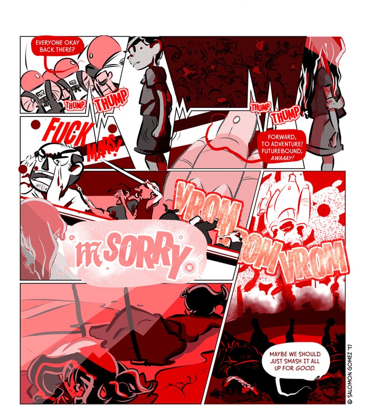 In the distant future Earth is so covered in crap no one wants to deal with it anymore, so humanity turns starward to start anew on Mars. Whatever obstacles stand against us we'll always look forward and move onward, bouyed by our greatest ideals: ingenuity, community, and above all else, freedom.