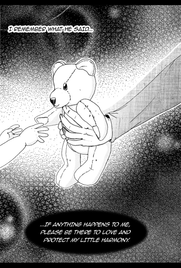 The story is of a girl named Harmony Adams, who's loving father gave her a teddy bear when she was born. He wished on the teddy bear that if anything was ever to happen to him, the teddy bear would be there to protect and love Harmony.