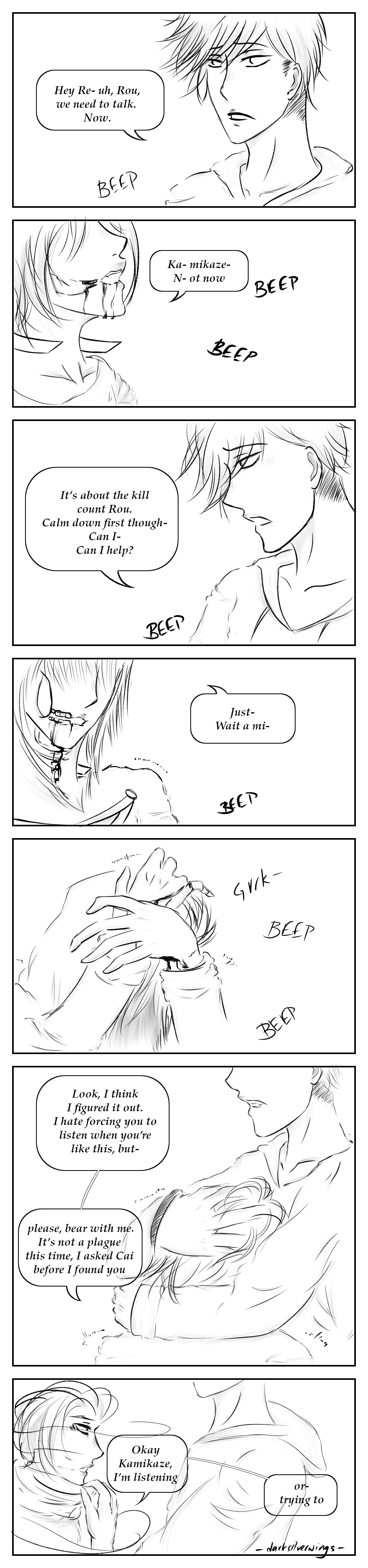 Hey guys! Really sorry about the wait but I won't have internet for a while now, I'll do my best to update when I can! (Kamikaze's just worried poor guy) ////givemesubsorz
